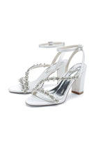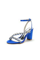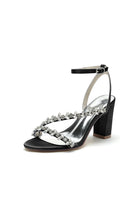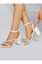 - These Rhinestone Beaded Ankle Straps Chunky Wedding Shoes epitomize elegance with their sparkling rhinestone embellishments.