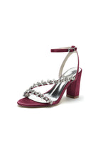 Rhinestone Beaded Ankle Straps Chunky Wedding Shoes