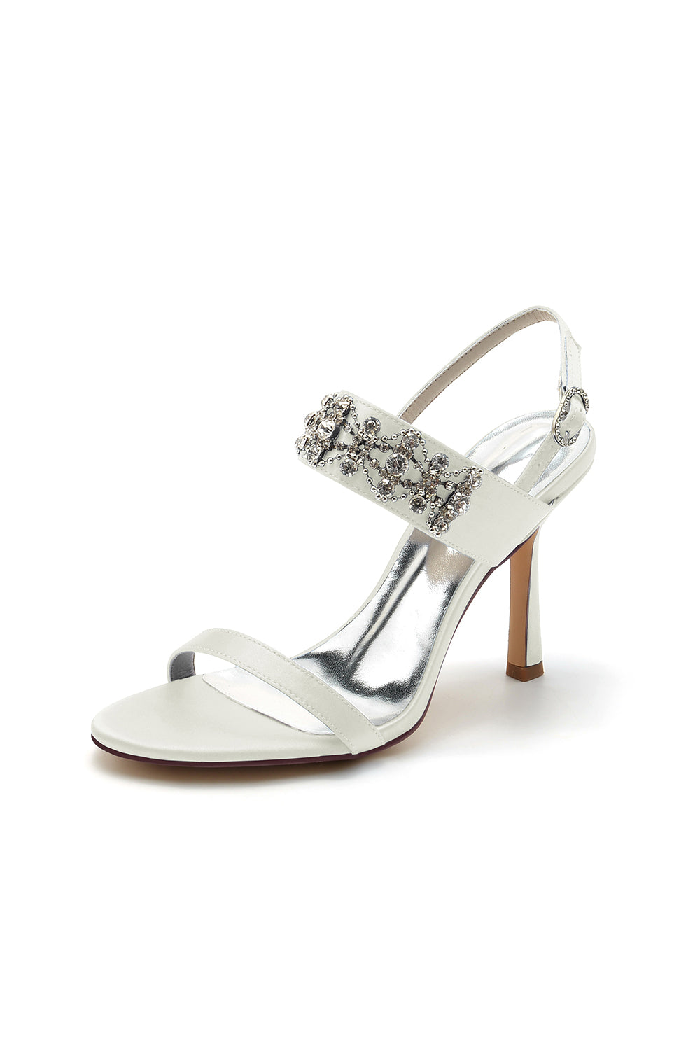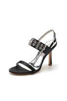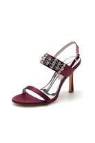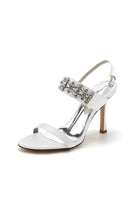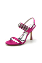 Elevate your style with these luxurious satin heels, perfect for special occasions. The standout feature is the glamorous crystal embellishment on the strap, adding a touch of elegance and sparkle to your evening look. Designed with a sleek stiletto heel and an adjustable ankle buckle, these shoes provide both style and comfort. The open-toe design makes them a great choice for weddings, parties, or any formal event where you want to make a lasting impression.