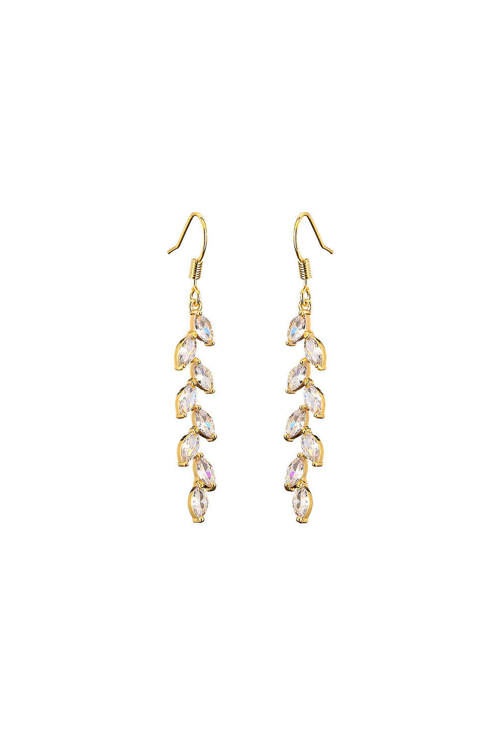 Rhinestone Leaf Dangle Earrings Crystal Drop