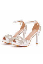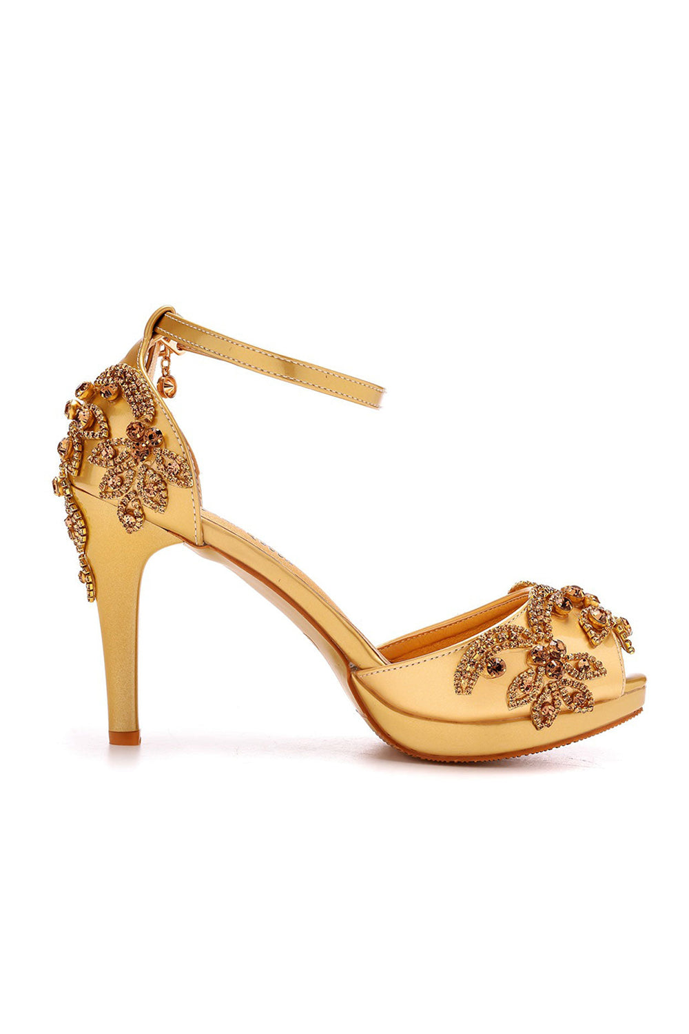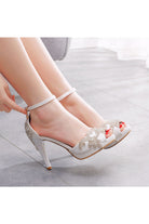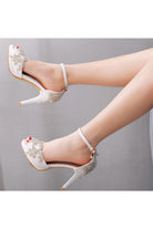 Rhinestone Flowers Decor Peep Toe Platform Stiletto Ankle-strap High Heels