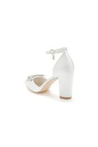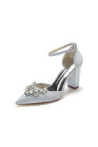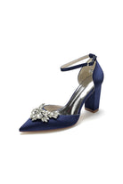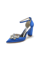 Rhinestone Pointed Toe Ankle Strap Satin Chunky Heel