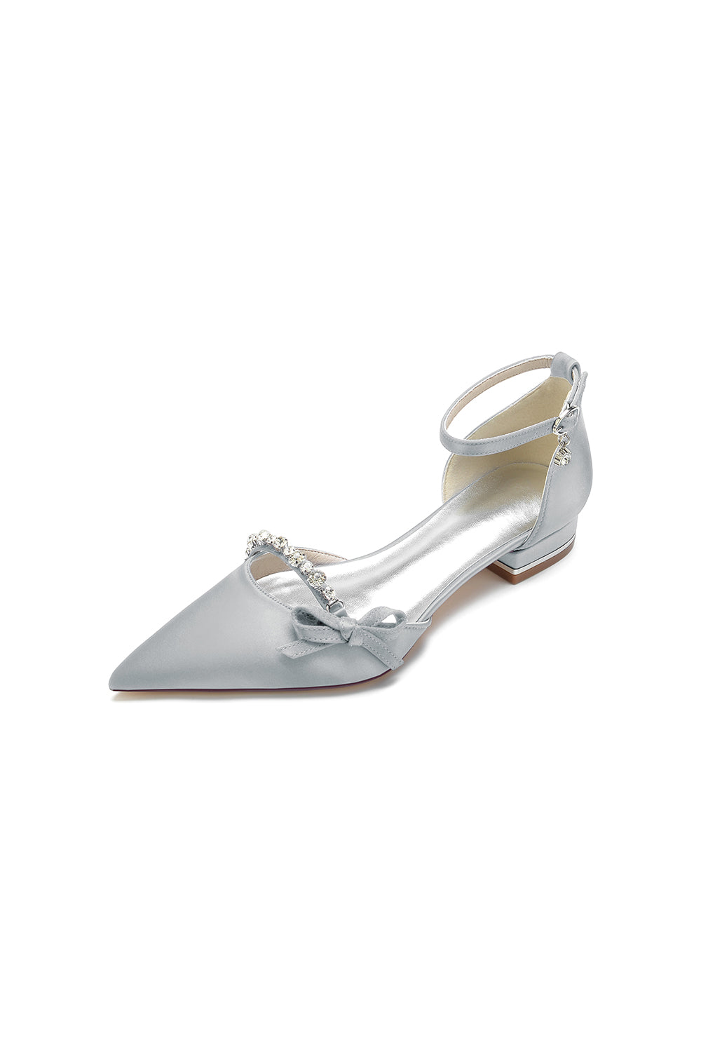 Rhinestone Pointed Toe Kitten Heels With Bow