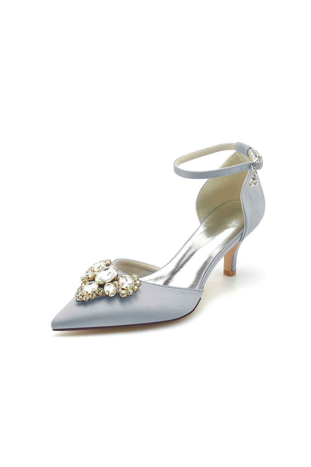 Rhinestone Pointed Toe Kitten Heels With Rhinestone