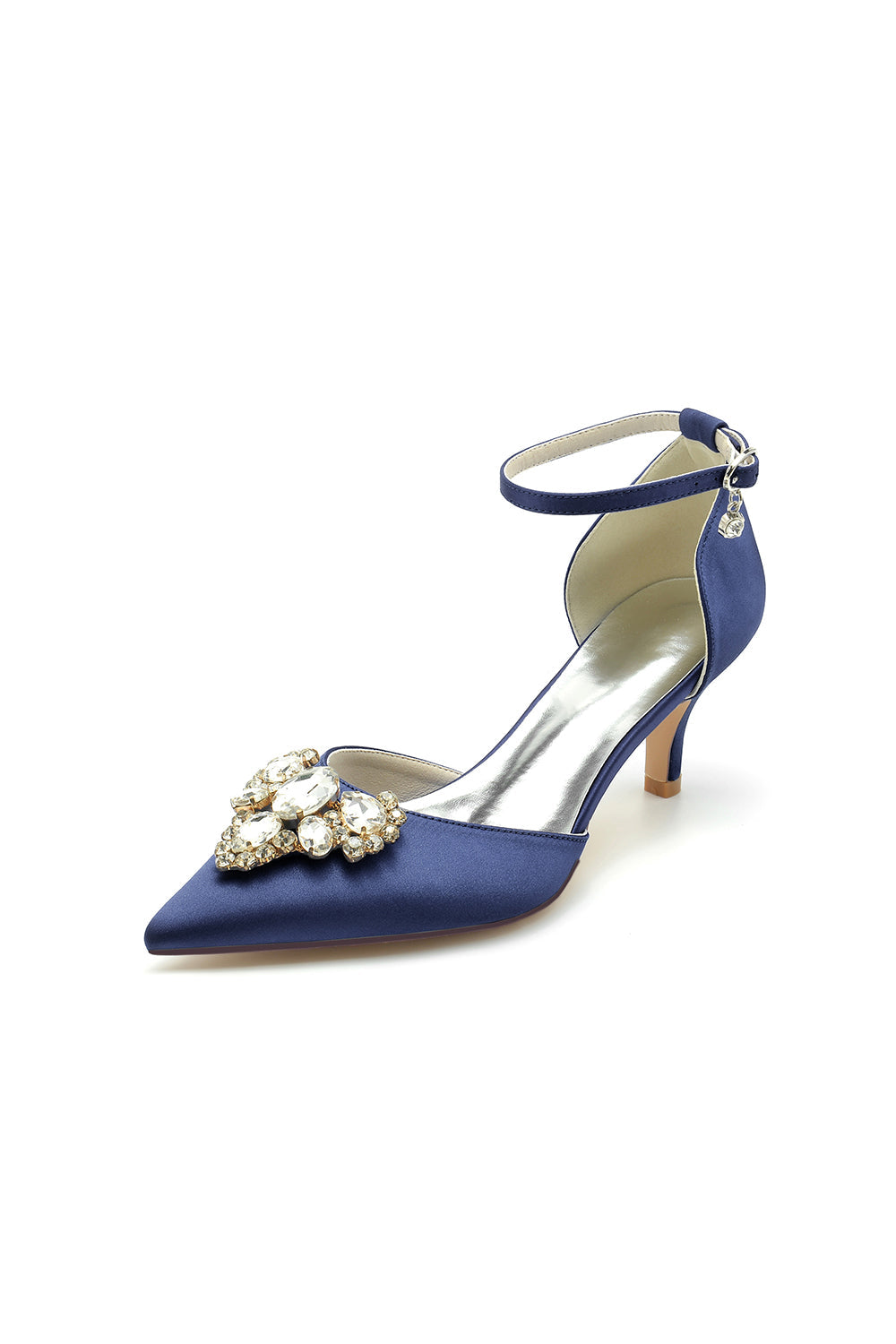 Elevate your style with our Rhinestone Pointed Toe Kitten Heels. Featuring sparkling rhinestones, these heels add a touch of glamour to any outfit. The pointed toe design flatters your foot, while the kitten heels provide comfort and sophisticated height. Perfect for any occasion, these heels are a must-have accessory.