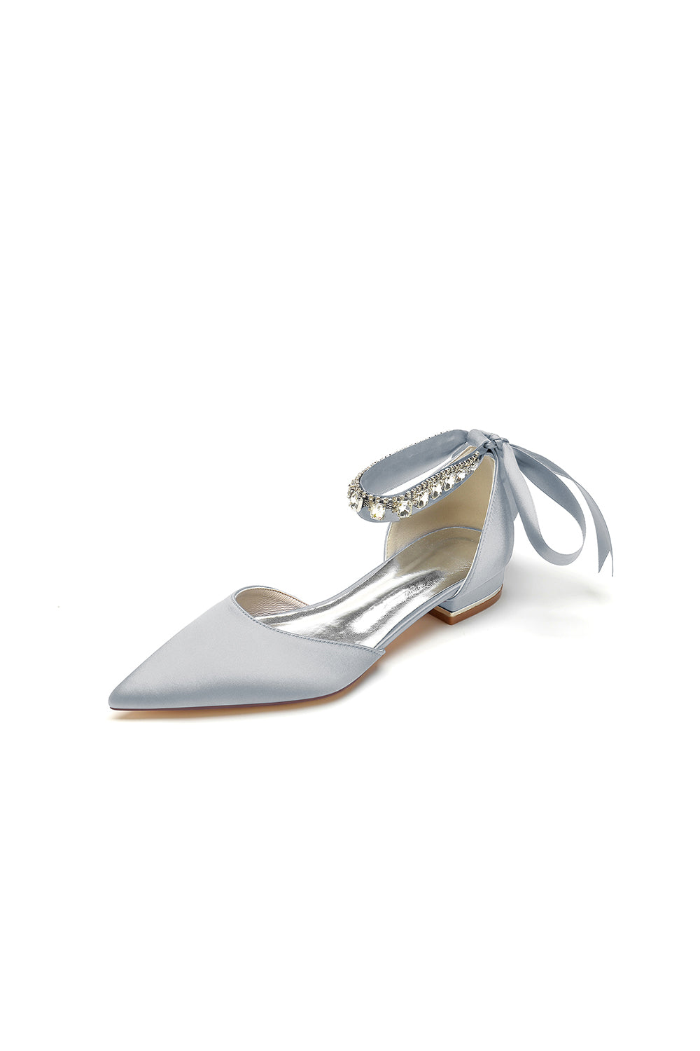 Rhinestone Ribbon Pointed Toe Ankle Strap Kitten Heels