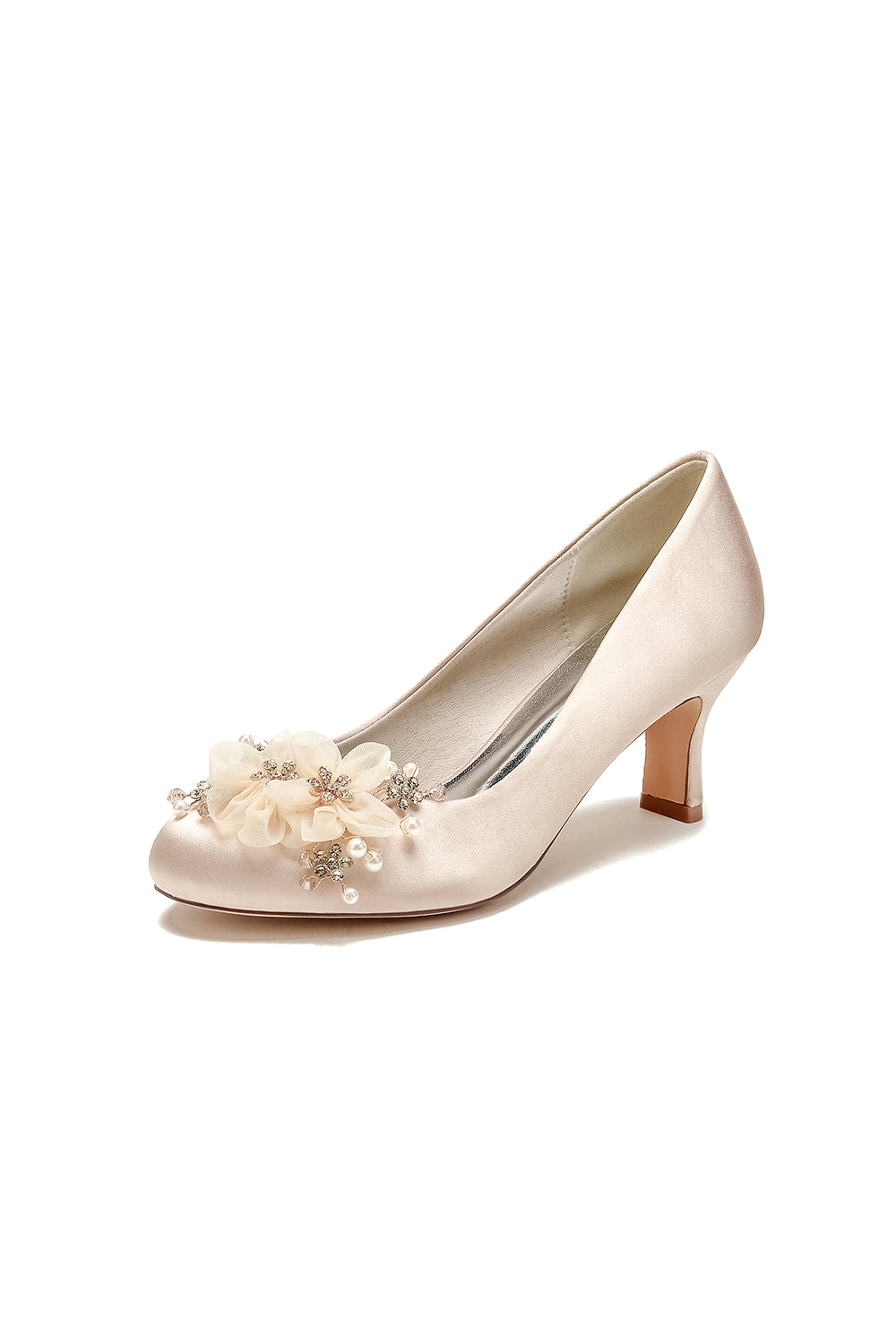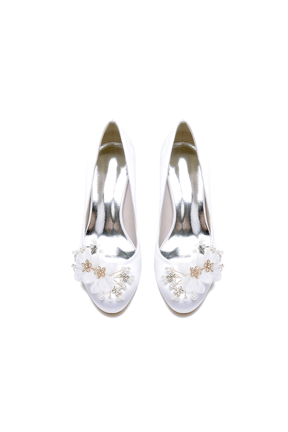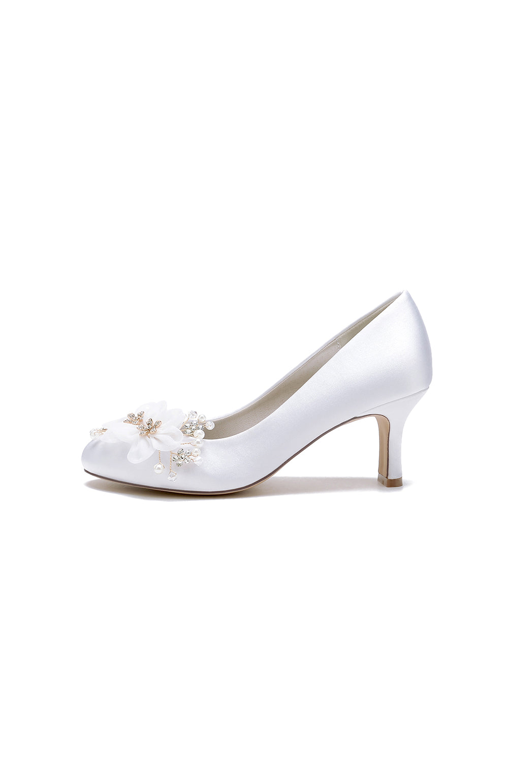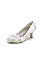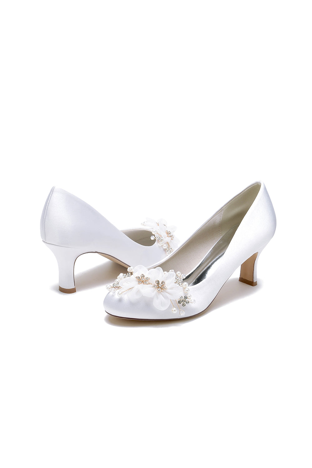 Rhinestone White Chunky Heels with Flower