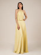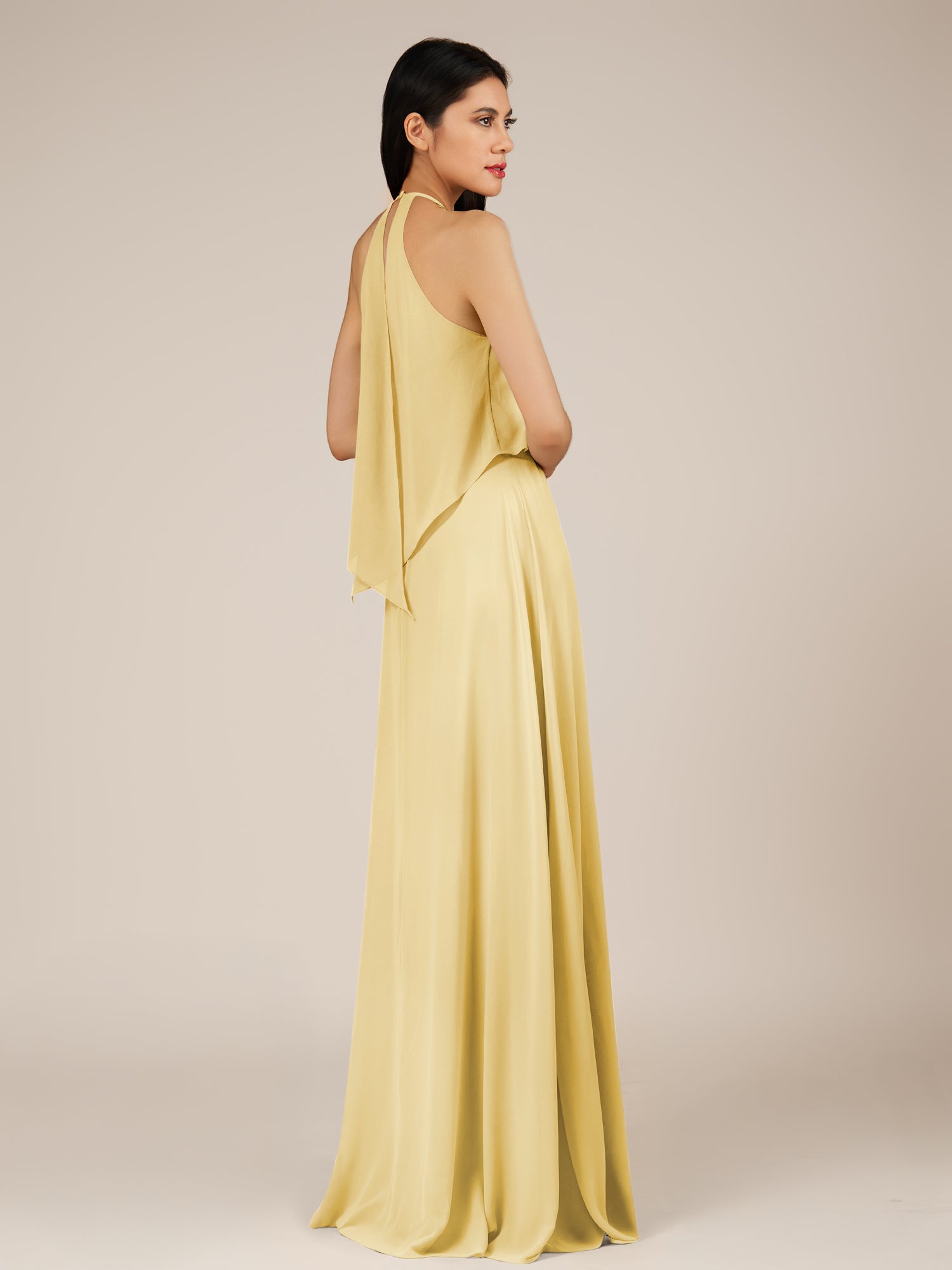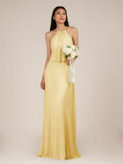 Rhoswen | Pastel Yellow - Sheath Chiffon Halter Neck Long Bridesmaid Dress
