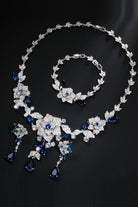 Royal Blue Flower Bracelet Necklace Jewelry Set