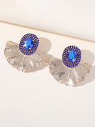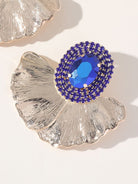 Royal Blue Rhinestones Leaf Floral Oval Earrings