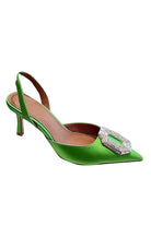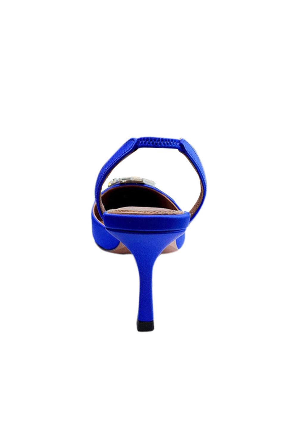 Royal Blue Satin Buckled Mid Heel Stiletto Sandals