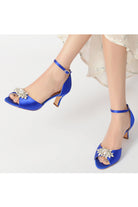 Indulge in elegance and sophistication with our Royal Blue Elegant High Heels, showcasing a state-of-the-art design that enhances any ensemble. Fashioned with a sleek Royal Blue facade, these heels emit an air of purity and refinement. The crossover straps lend a trendy element, enveloping your ankle for a snug fit. The square toe with a subtle curve brings a playful twist to the design, while the slender heel grants height and elongates your legs. The sturdy brown sole, artfully contrasting with the Royal Blue shoe body, is crafted from durable material for reliable stability and traction.
