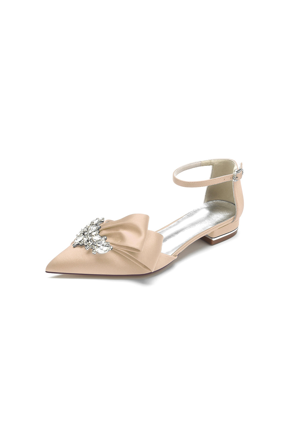 Satin Beaded Pointed Toe Ankle Strap Buckle Kitten Heels