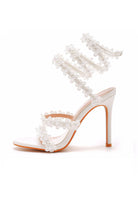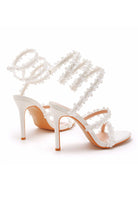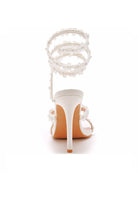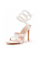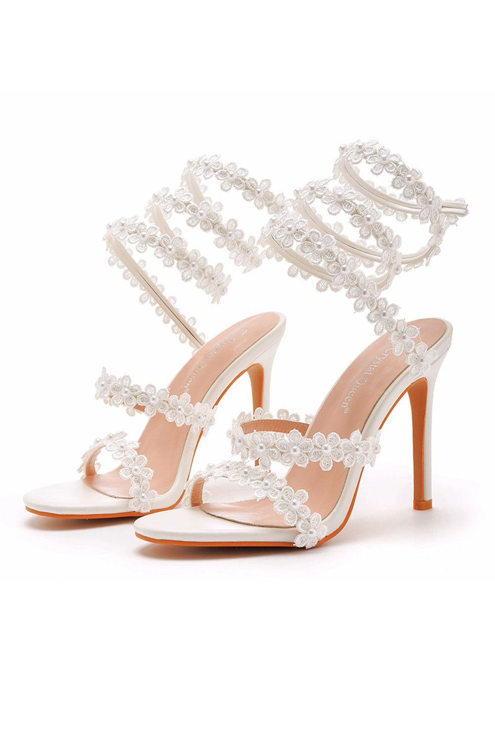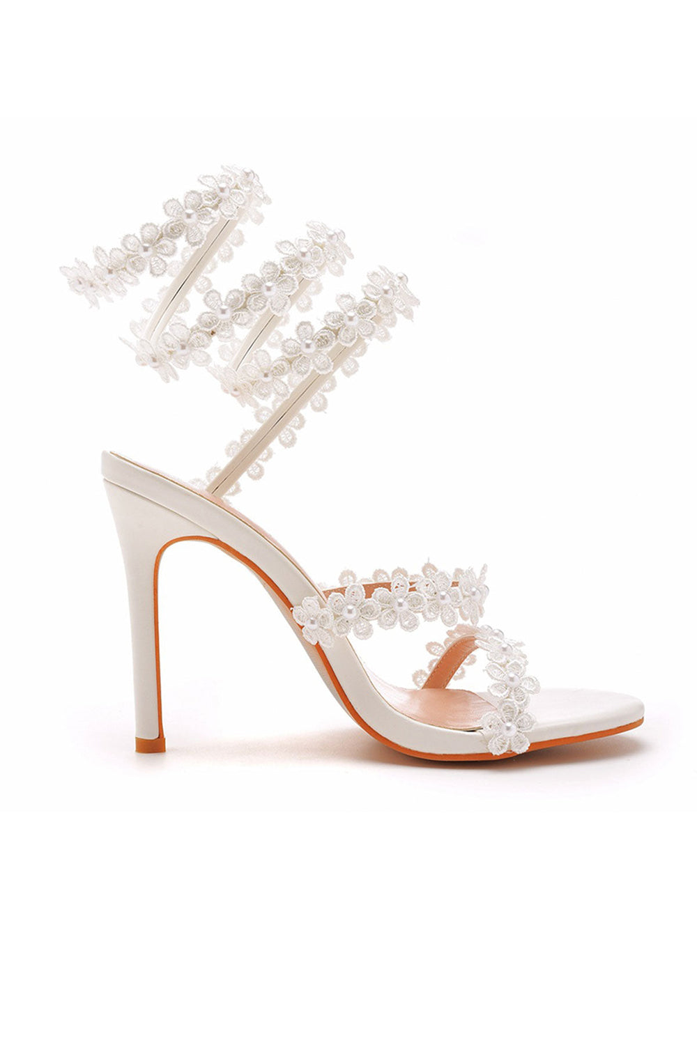 White Flower Ankle Wrap Strap Open Toe Ultra High Heels