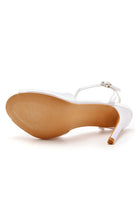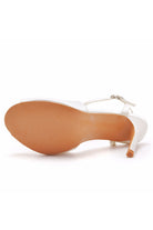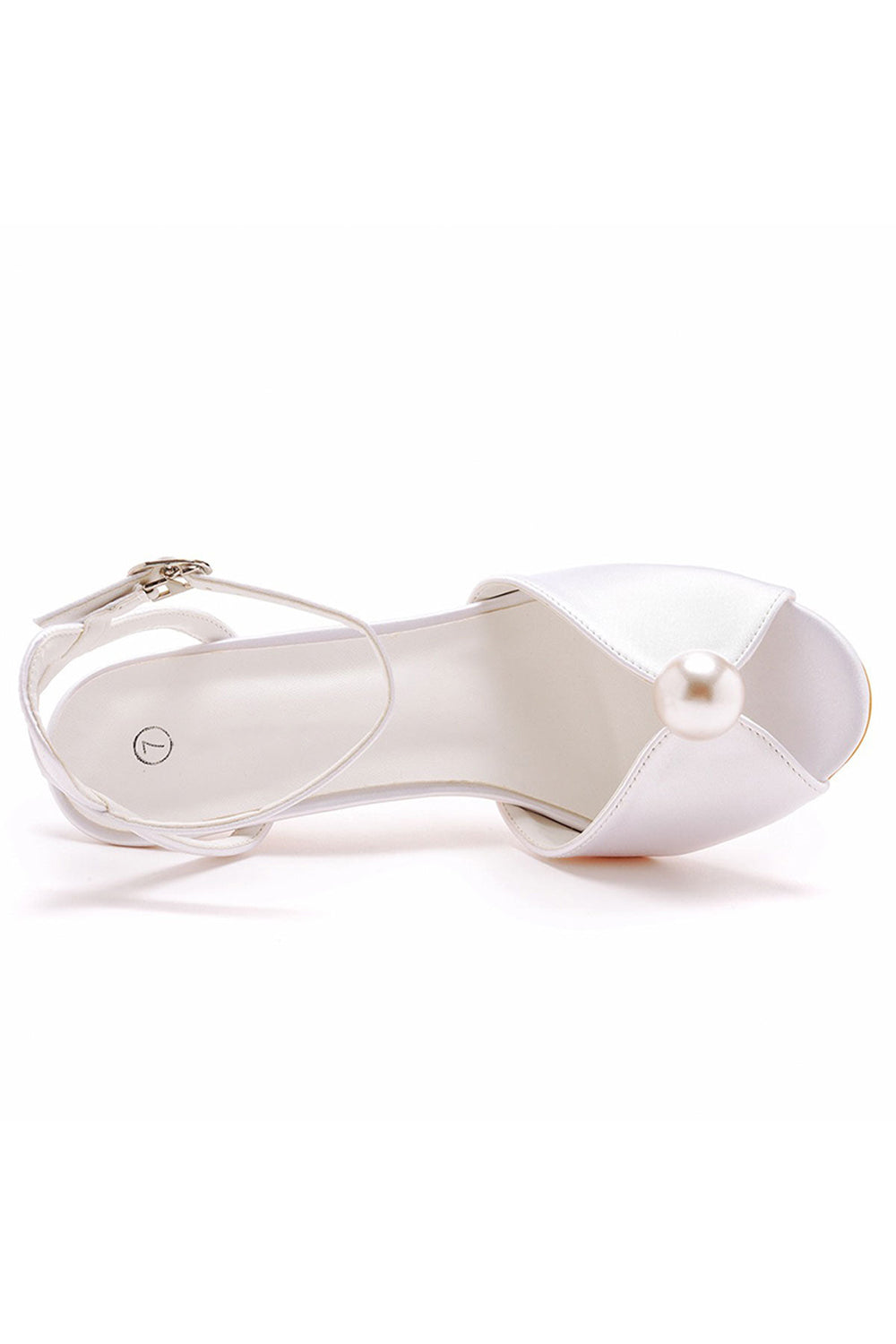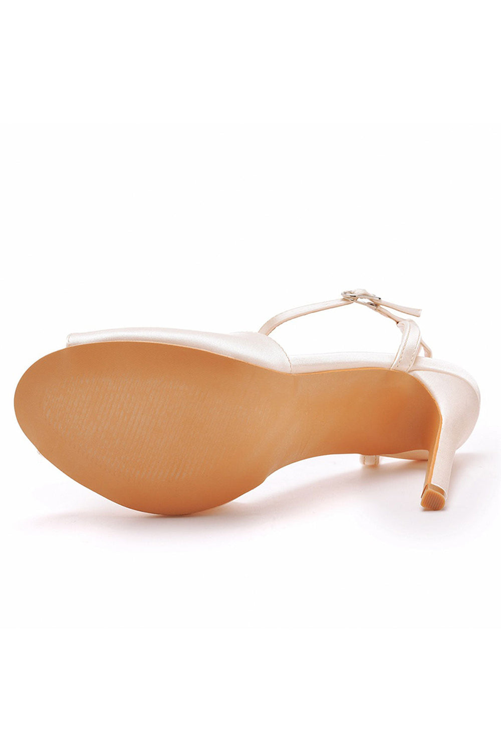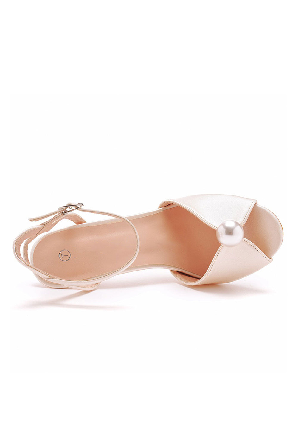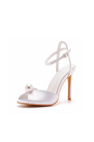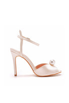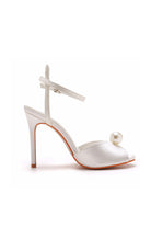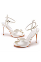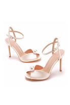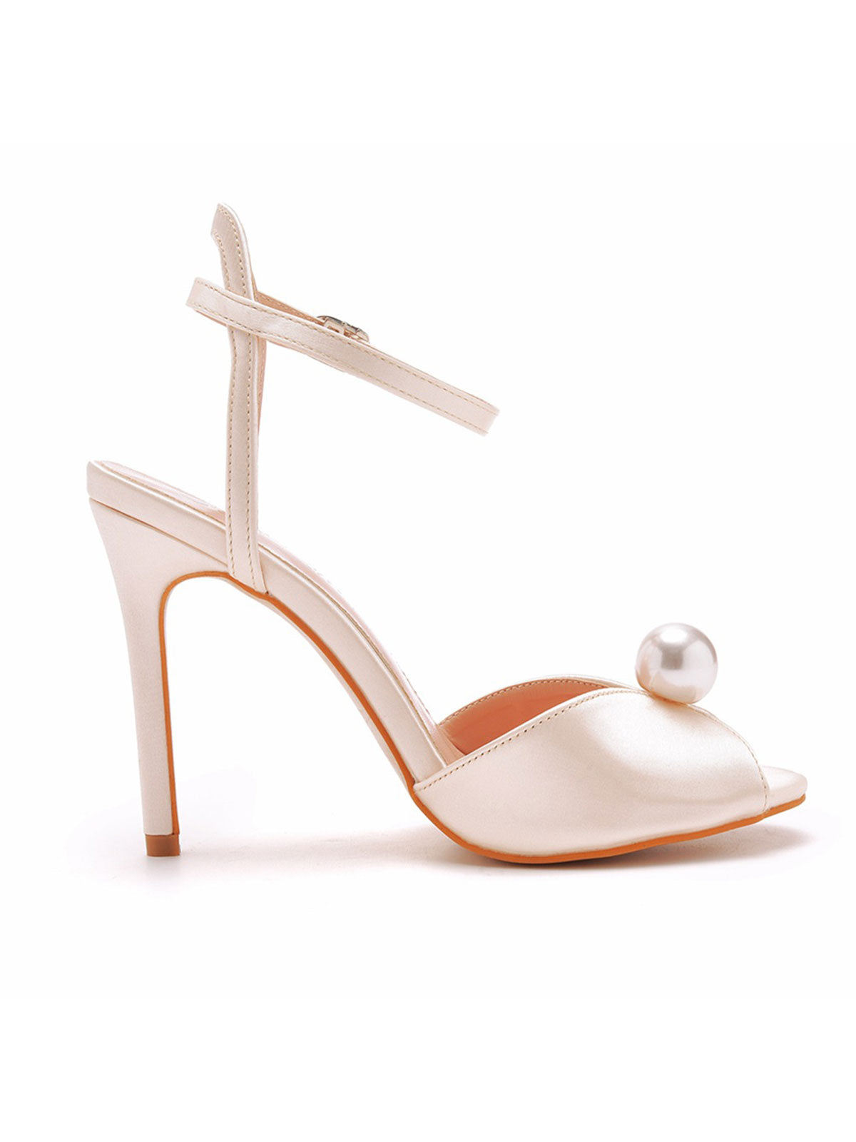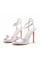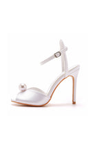 Satin Pearl Peep Toe Stiletto Ankle Strap Buckle Ultra High Heels