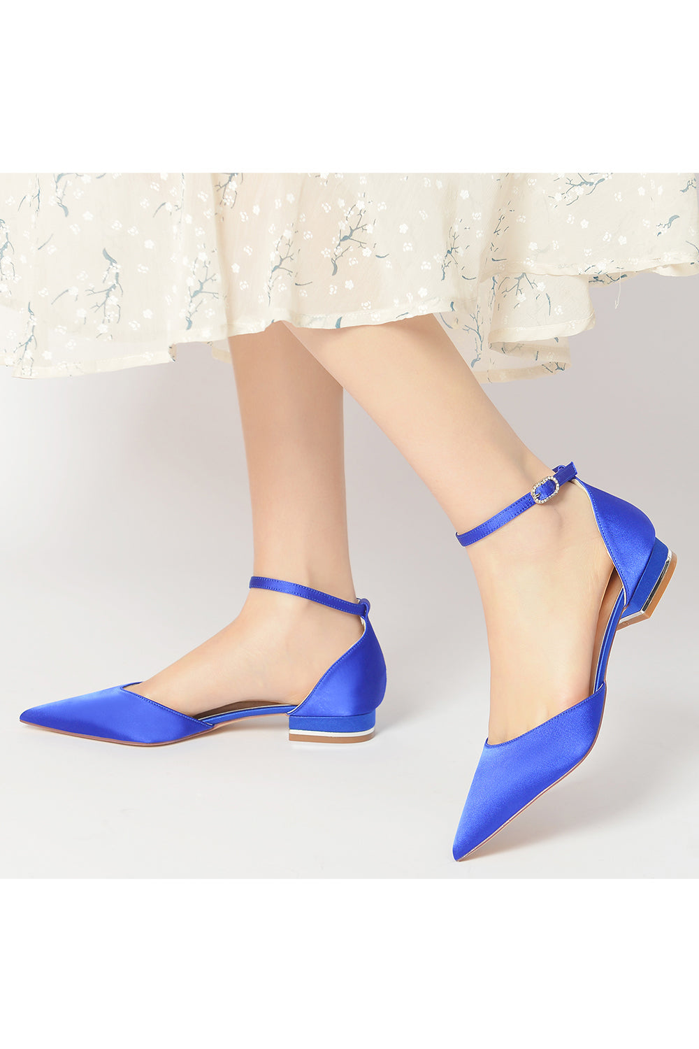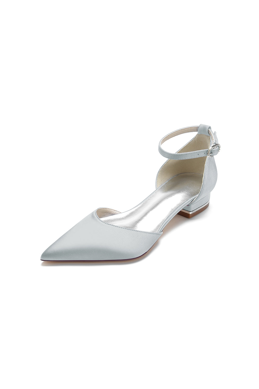 Satin Pointed Toe Ankle Strap Kitten Heels