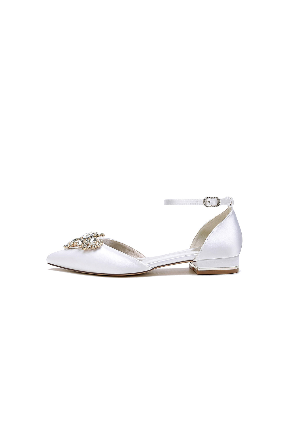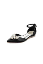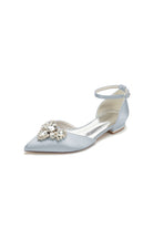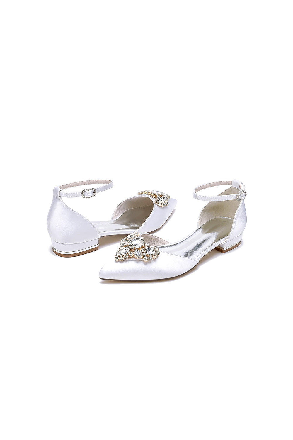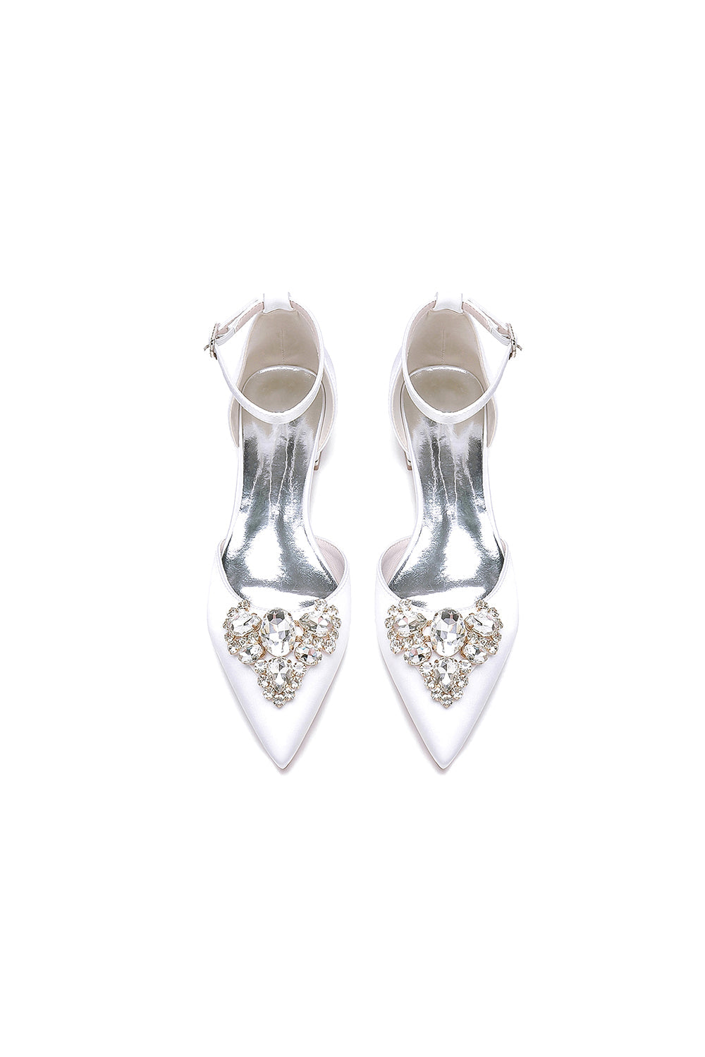 Satin Pointed Toe Ankle Strap Rhinestone Kitten Heels