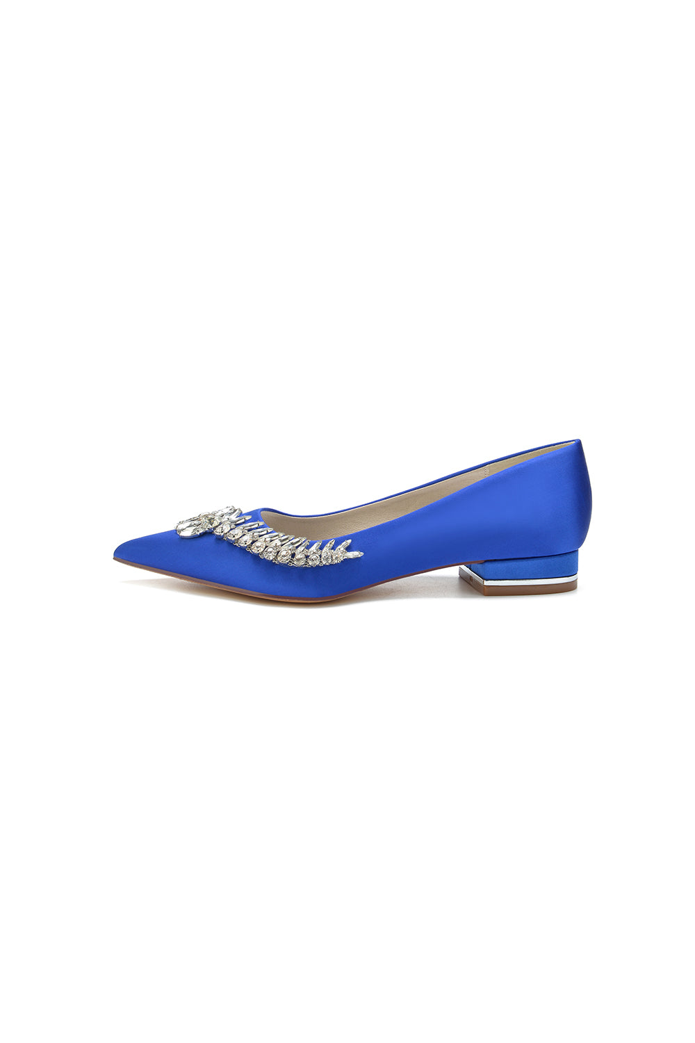 Satin Pointed Toe Beading Kitten Heels