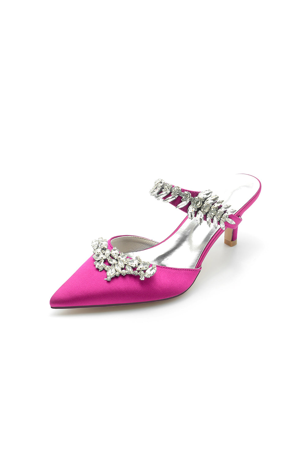 Satin Pointed Toe Mules with Crystal Rhinestone