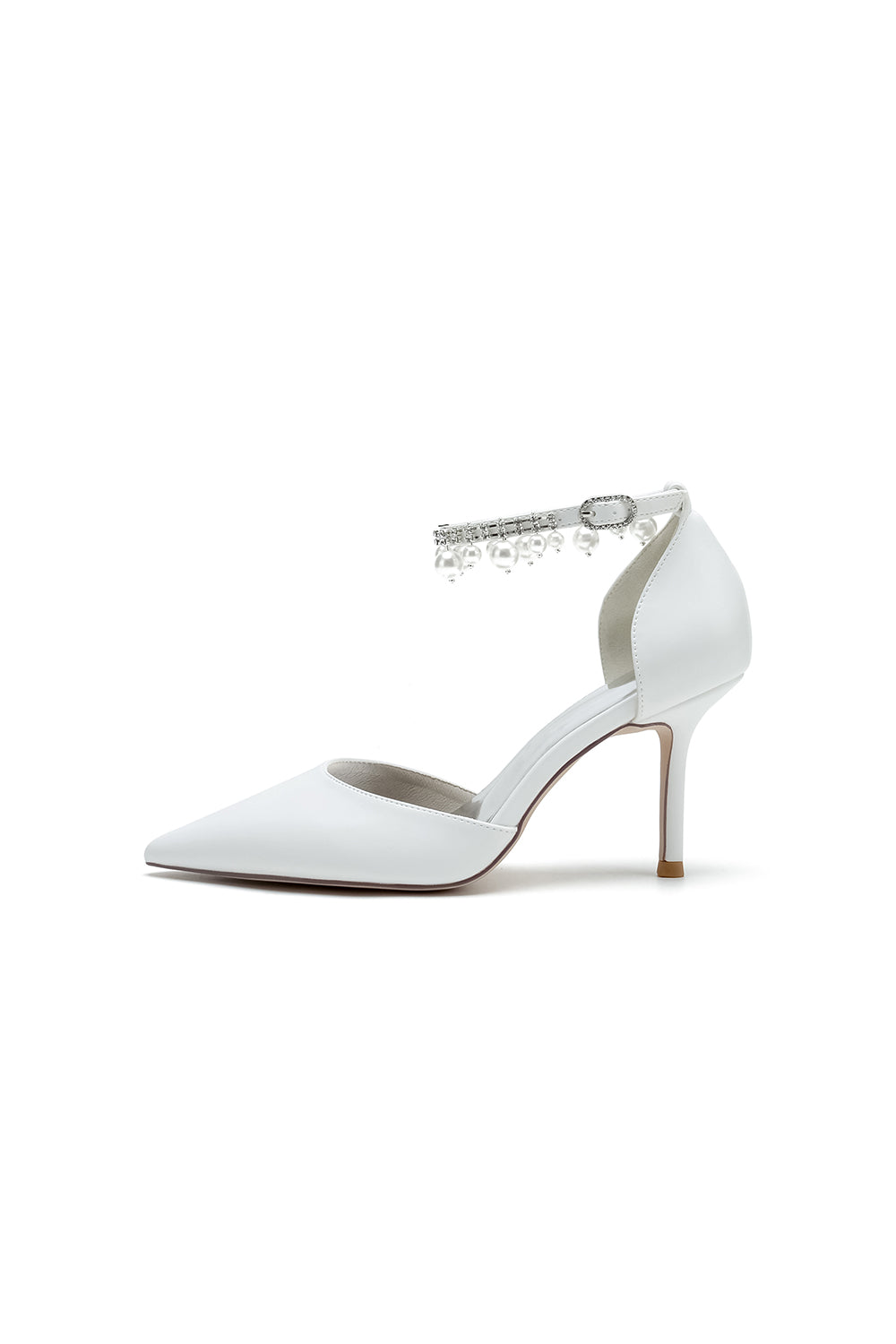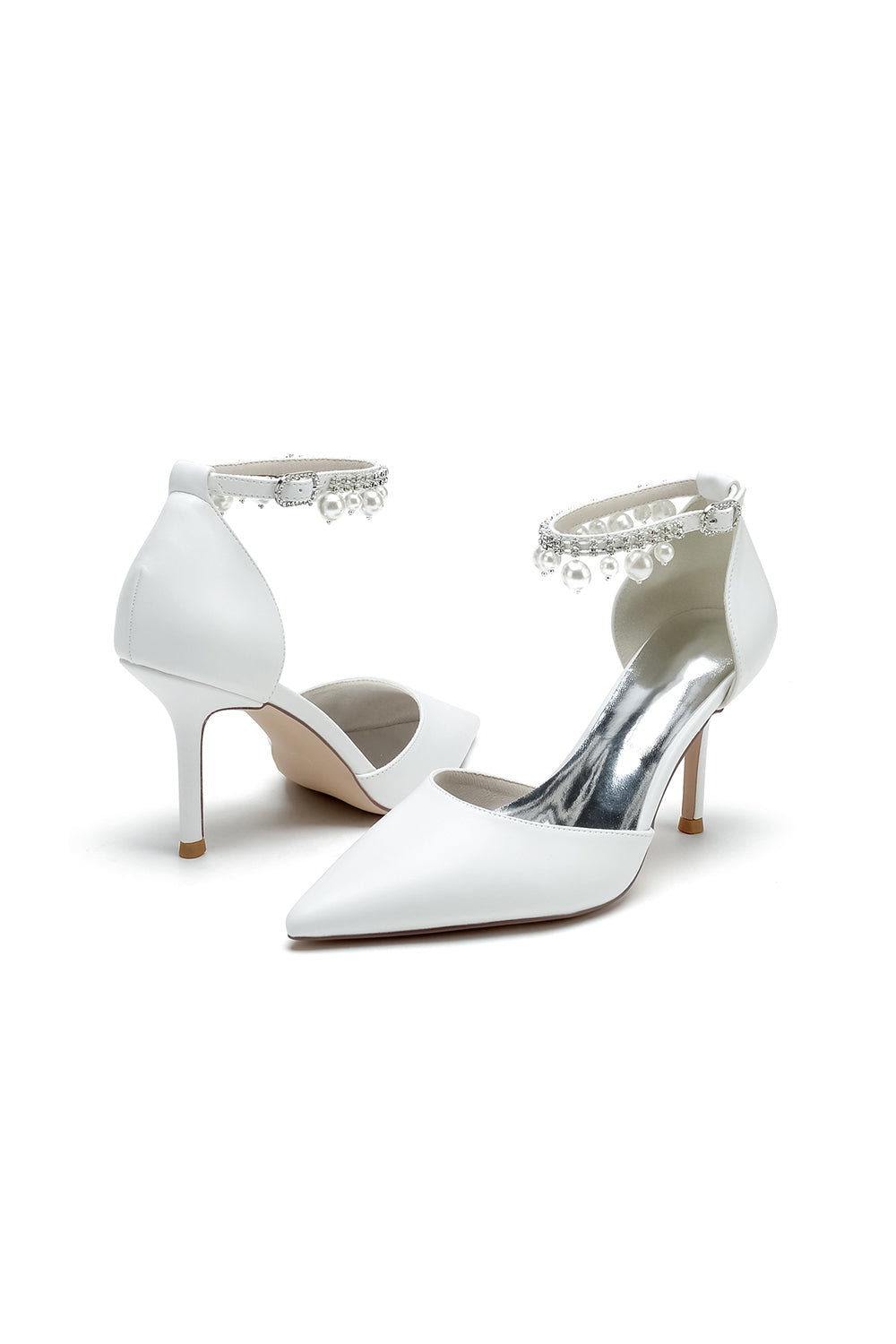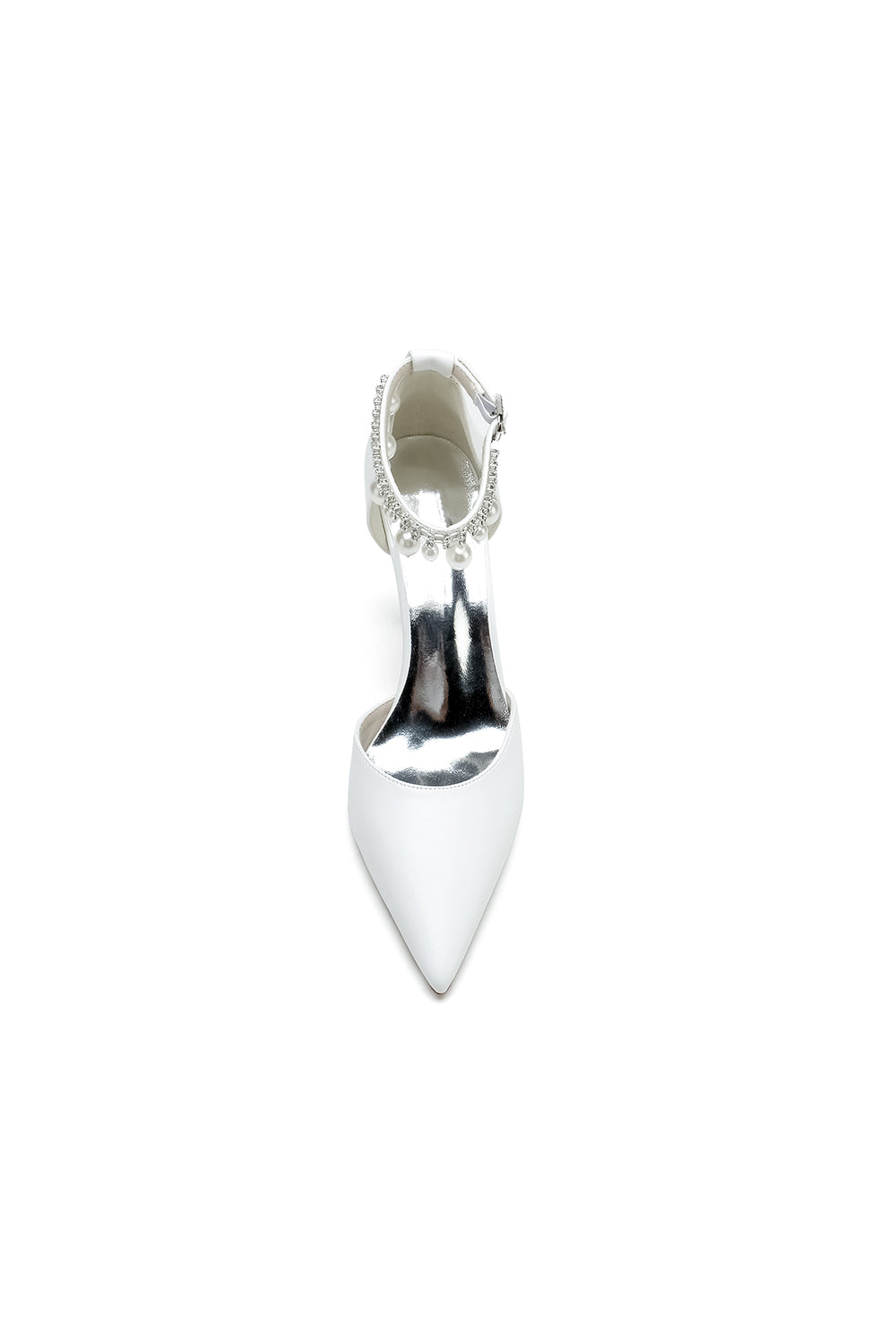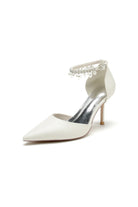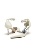 Satin Pointed Toe Pearl Beaded Ankle Strap Simple Wedding Shoes