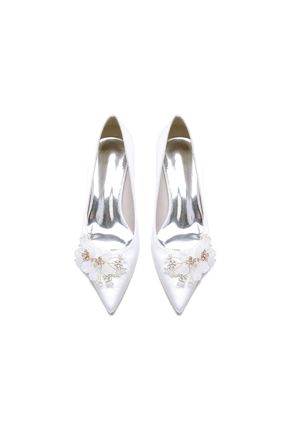 Satin Wedding Shoes Stiletto Heel With Rhinestone Flower