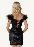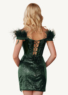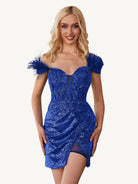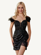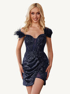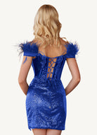 Sequin Off The Shoulder Lace Up-Corset Short Homecoming Dress With Feather