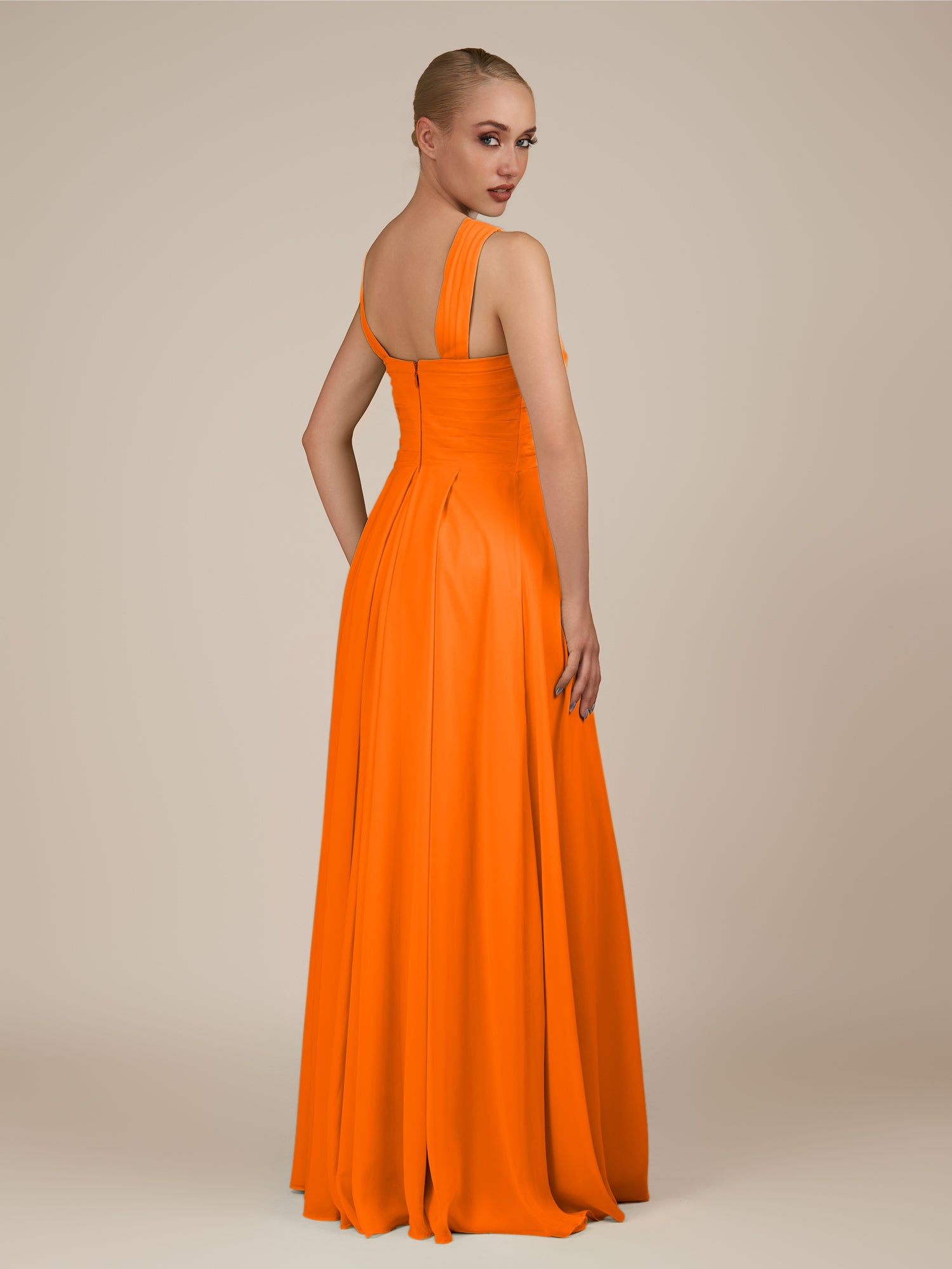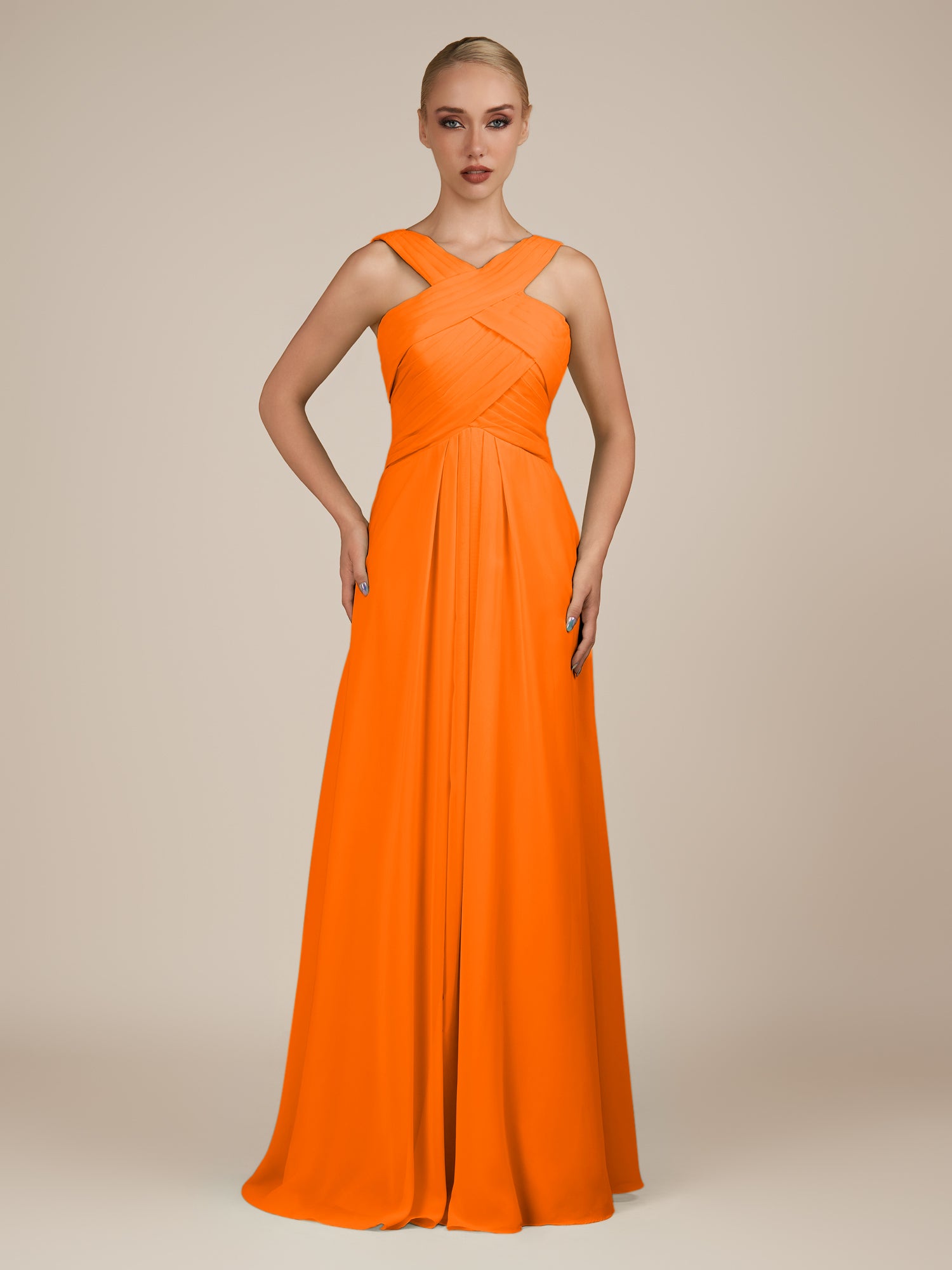 Sharlie is an elegant and refined choice for your bridal party. Crafted from soft chiffon, she features a flattering halter neckline and a sleeveless bodice for a modern, graceful look. Her floor-length A-line skirt flows effortlessly with every step, enhanced by delicate pleats that add texture and sophistication. Finished with a smooth zipper back, Sharlie combines timeless elegance with effortless style for weddings and special occasions.