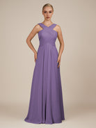 Sharlie | Tahiti - A Line Chiffon Halter Neck Long Bridesmaid Dress with Pleats