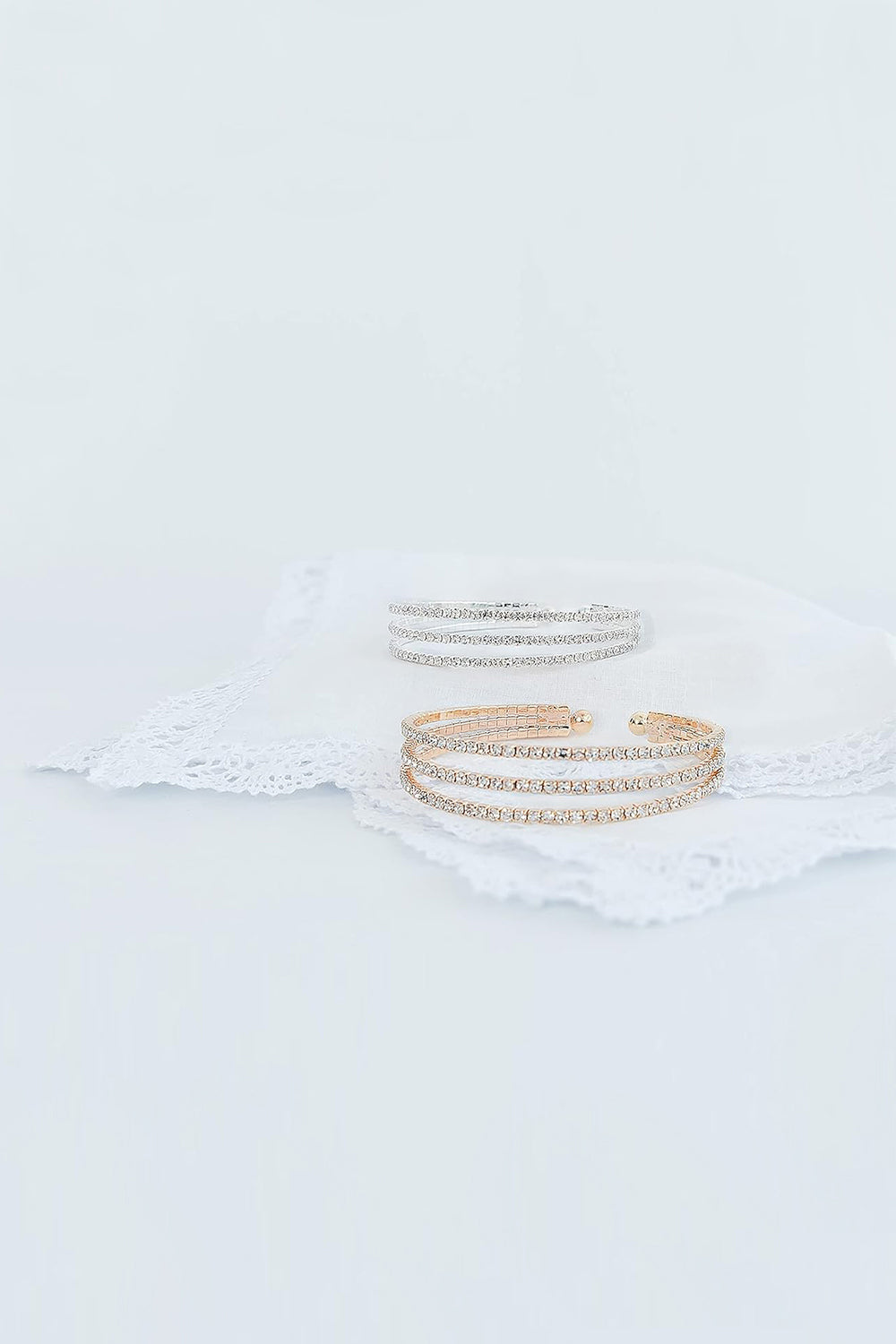 Silver Cuff Adjustable Three Row Bracelets with Rhinestone