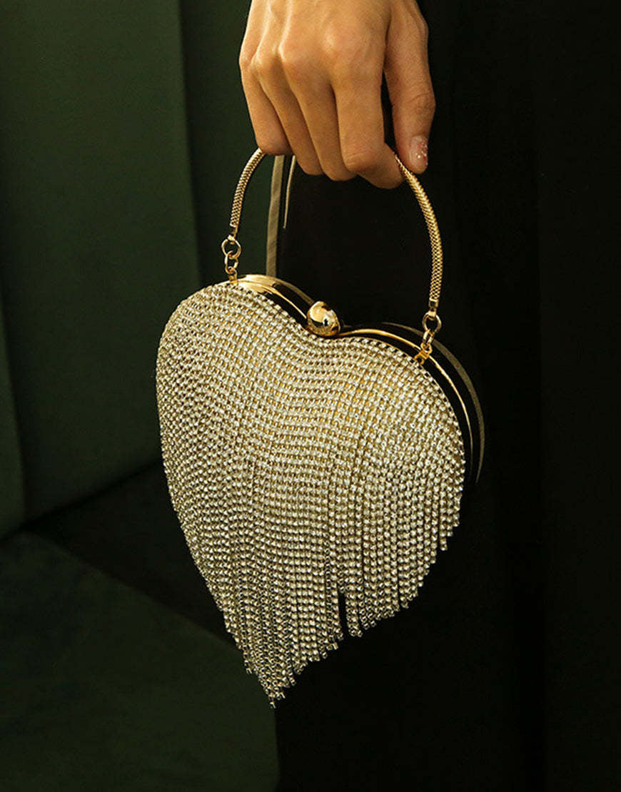 Silver Handle Sweetheart Clutch Bag With Pendant