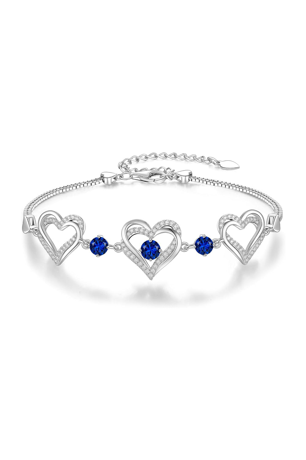 Silver Love Heart Link Adjustable Chain Bracelets with Birthstone