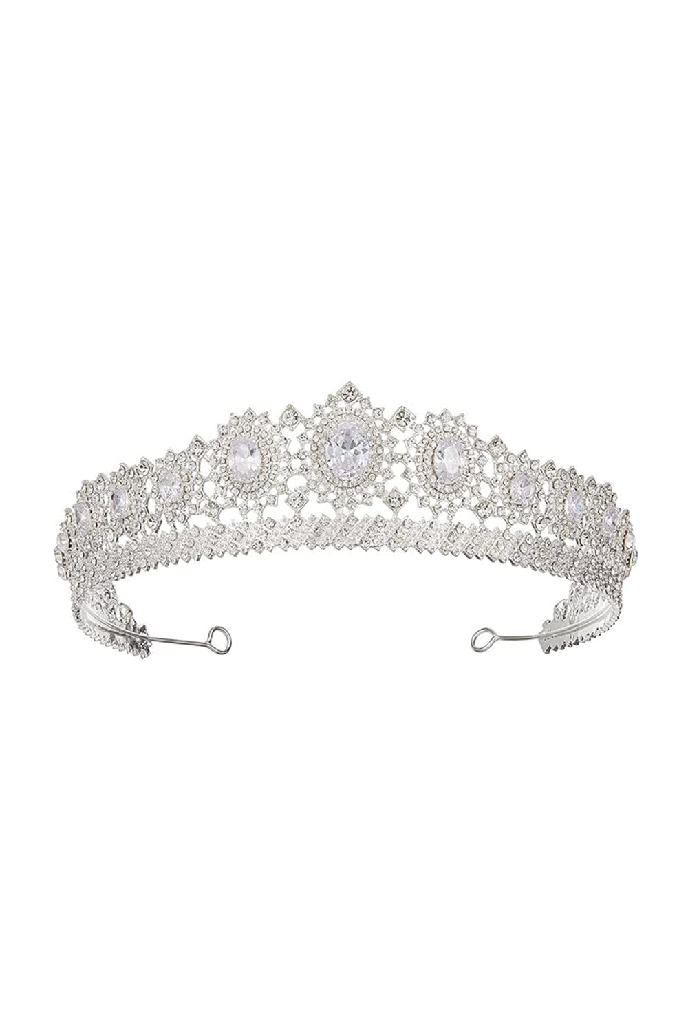 This timeless tiara combines larger teardrop crystals with smaller round-cut crystals to create a brilliant sparkle effect, sparking and shinning for longtime. Crystal,clear Cubic Zirconia, durable hard silver-plated metal; Color: silver; Exquisite craftsmanship enhances its quality and grade. (Free gold bobby pins for security)