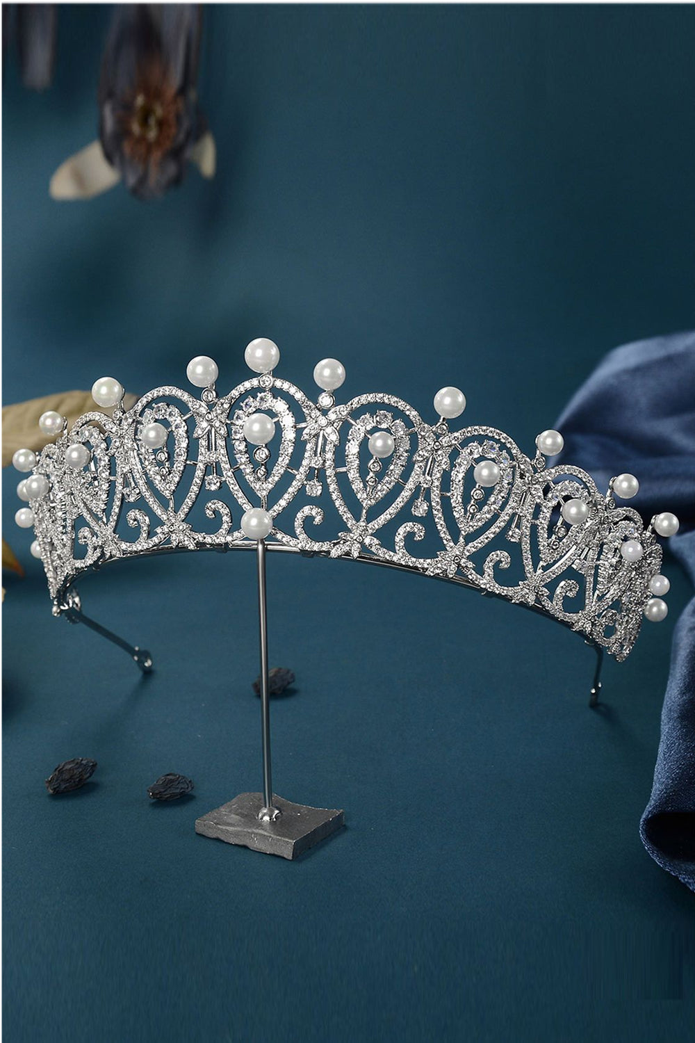 ?The delicate design combines elegance and sophistication, with pearls accentuating the tiara's graceful curves. Perfect for special occasions, this tiara exudes timeless beauty and refined charm.