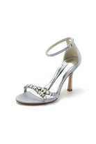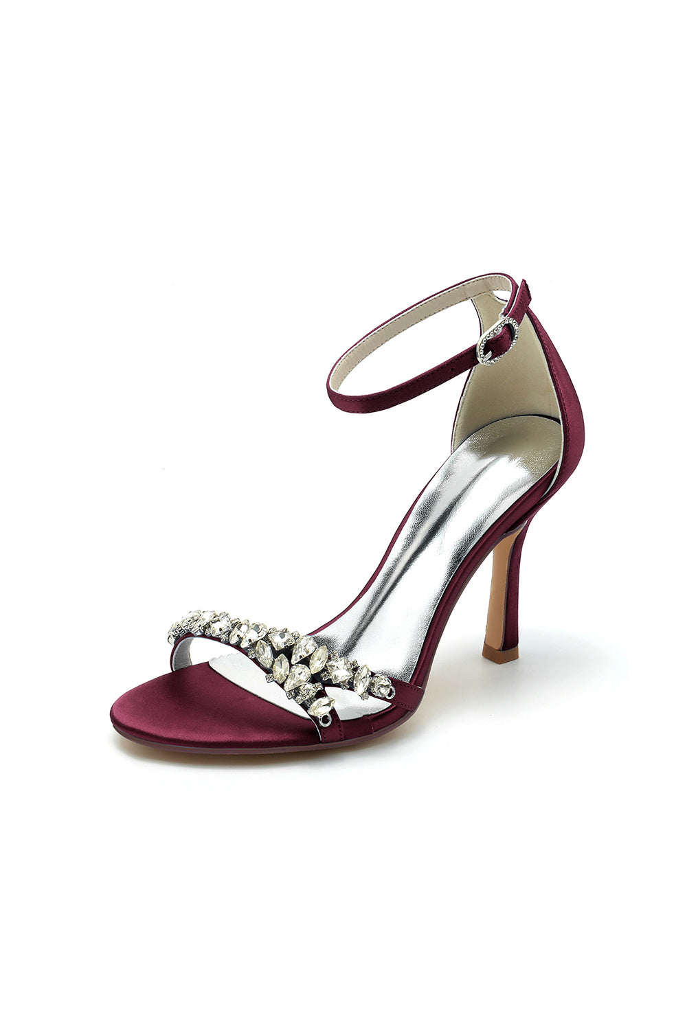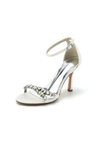 Step into elegance with the stiletto heels, crafted from luxurious satin fabric and adorned with sparkling rhinestones on the front strap. These shoes feature a sleek open-toe design, making them perfect for formal events, weddings, or any special occasion. The adjustable ankle strap with a delicate buckle adds both style and support, while the stiletto heel elevates your look with grace. The artificialleather lining ensures all-day comfort, and the durable rubber sole provides traction for confident steps. Whether paired with a cocktail dress or evening gown, these heels are designed to make a statement.