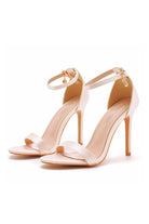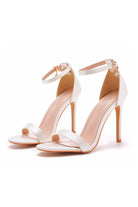 Simple Satin Open Toe Ankle Strap Buckle Stiletto Ultra High Heels