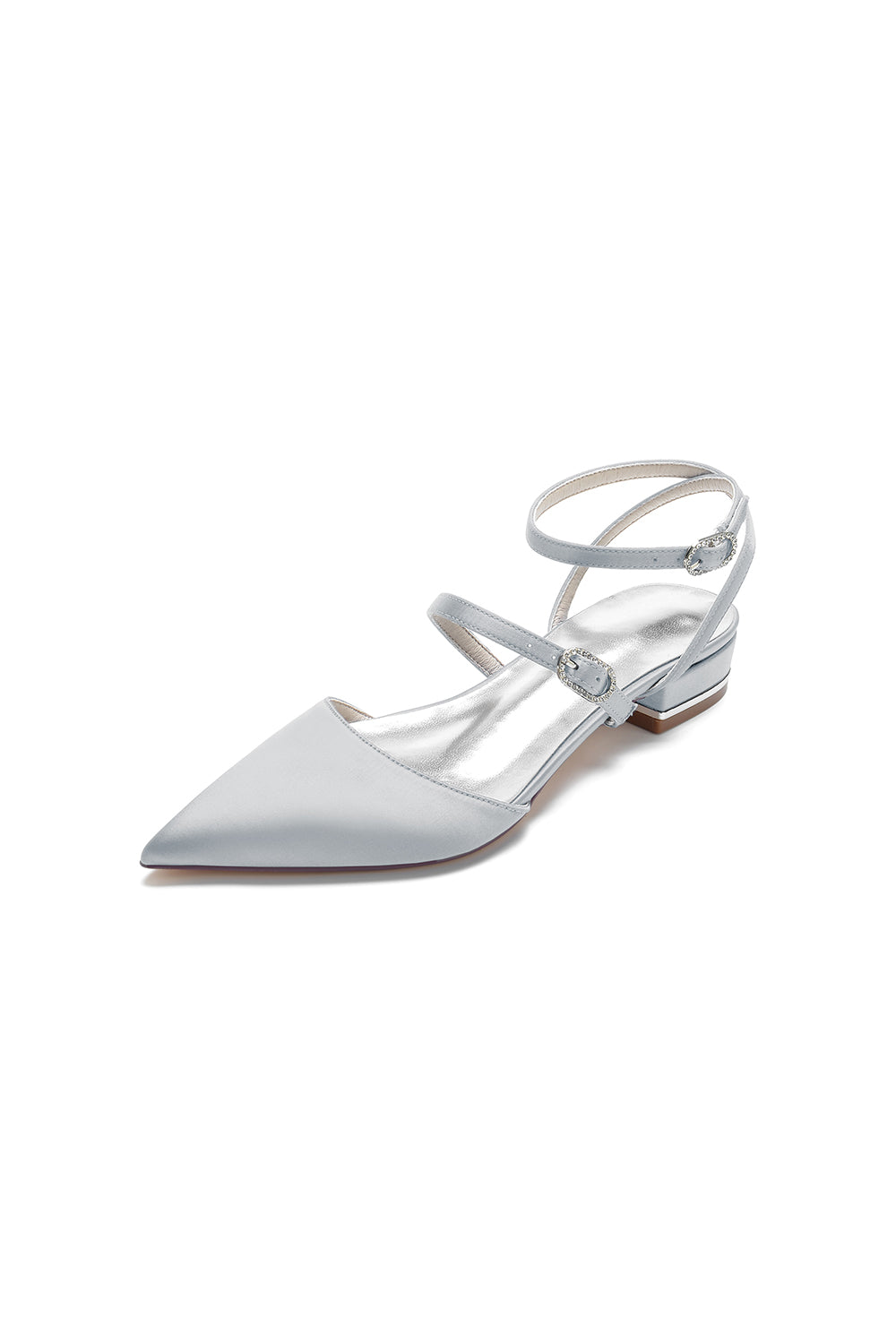 Simple Satin Pointed Toe Buckle Kitten Heels
