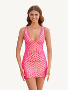 Step into the spotlight with "Della," the quintessential short bodycon homecoming dress that magnifies your allure. Della doesn't just make a statement; it screams opulence. Crafted from luxurious sequin fabric that shimmers with every move, this dress is a living fantasy in fuchsia, white, royal blue, orange, champagne, and red. The V-neckline and V-back offer a harmonious symmetry that flatters your figure while the sleeveless design allows a flirtatious glimpse of your shoulders. Its sheath silhouette hugs your curves, making you an instant magnet for gazes. A concealed zipper back ensures the attention stays on you and the fabulous sequins.