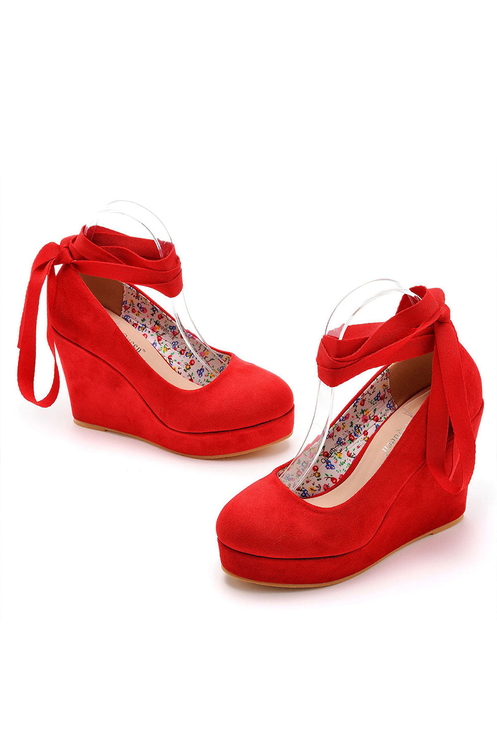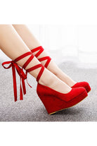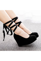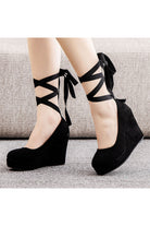 Sweet Round Toe Platform Heels Ankle Strap Wedges Heels