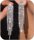 Tassel Gold Small Circle Long Earrings with Rhinestones