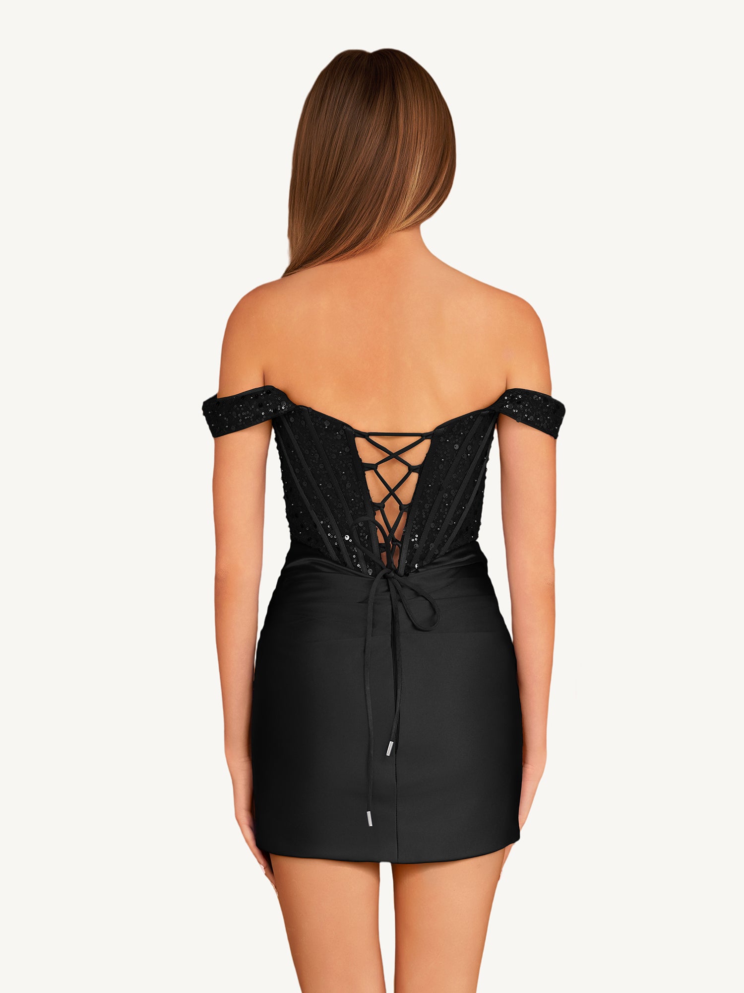 Sparkly Off the Shoulder Sequins Royal Blue Corset Homecoming Dress