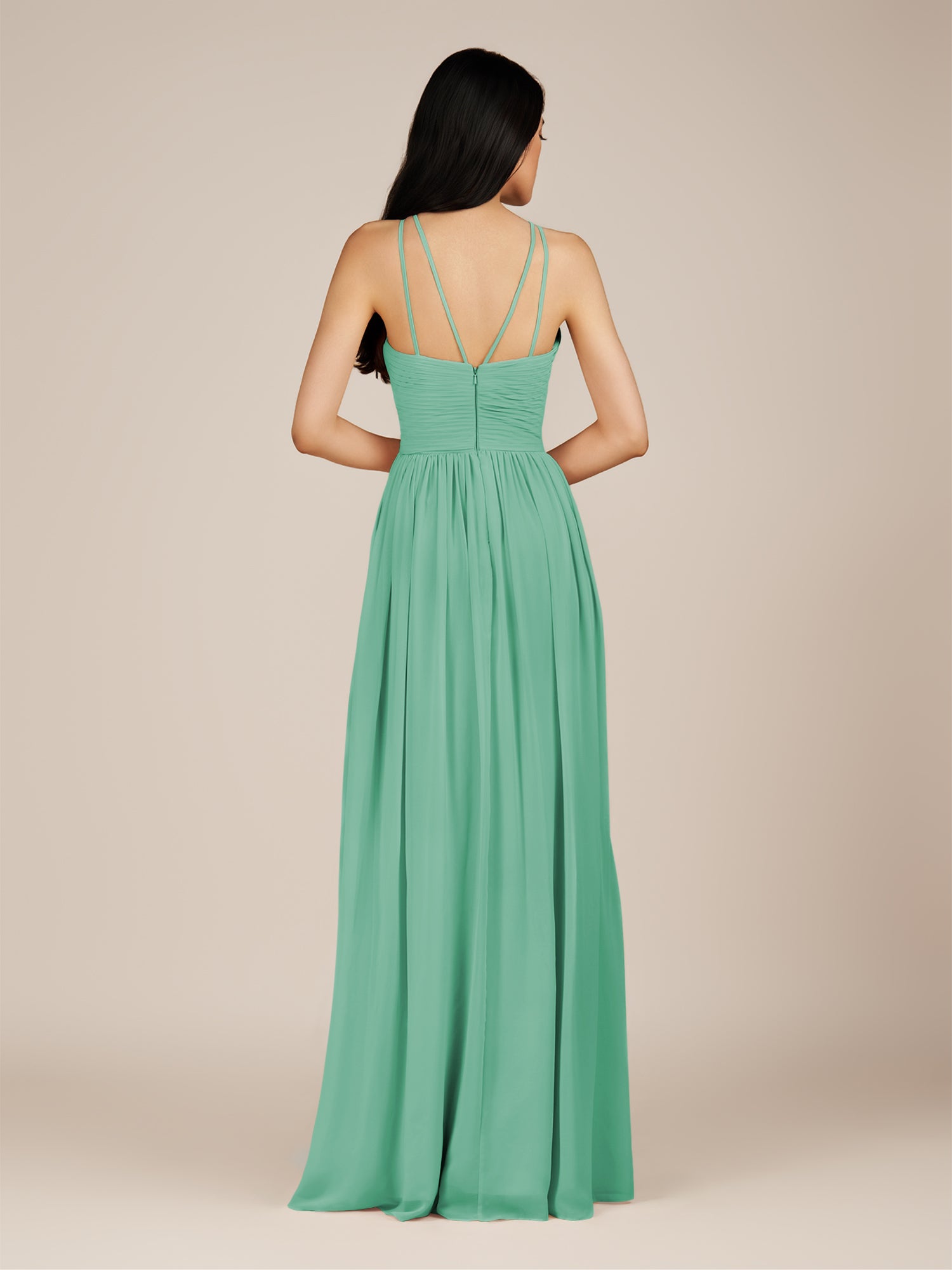 Ursa | Turquoise - A Line Chiffon Halter Neck Long Bridesmaid Dress with Pleats