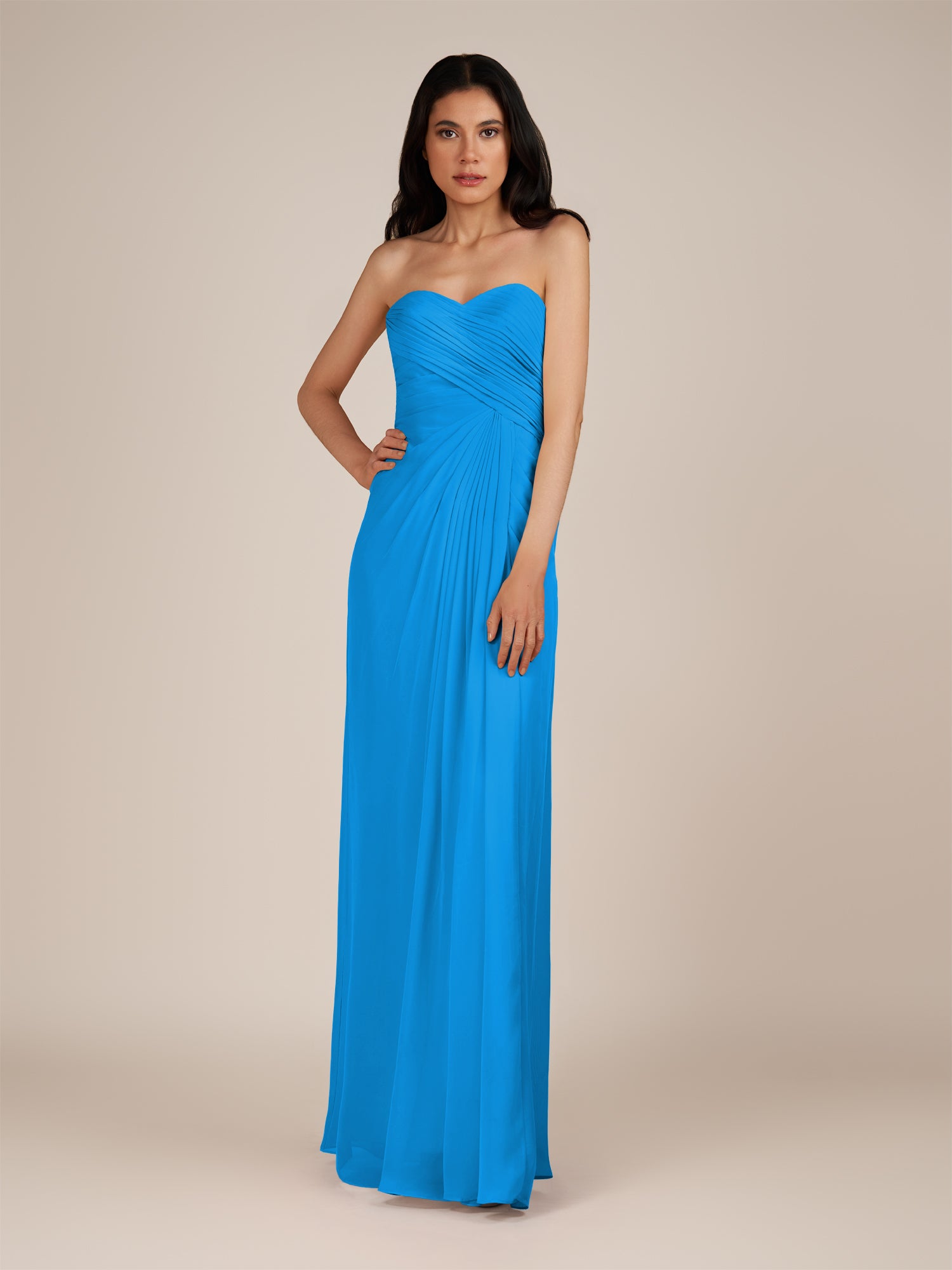 Wanlian | Blue Jay - A Line Chiffon Sweetheart Long Bridesmaid Dress with Pleats