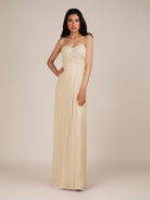Wanlian | Champagne - A Line Chiffon Sweetheart Long Bridesmaid Dress with Pleats