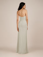 Wanlian | Dove Gray - A Line Chiffon Sweetheart Long Bridesmaid Dress with Pleats
