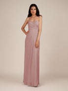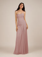 Wanlian | Dusty Rose - A Line Chiffon Sweetheart Long Bridesmaid Dress with Pleats