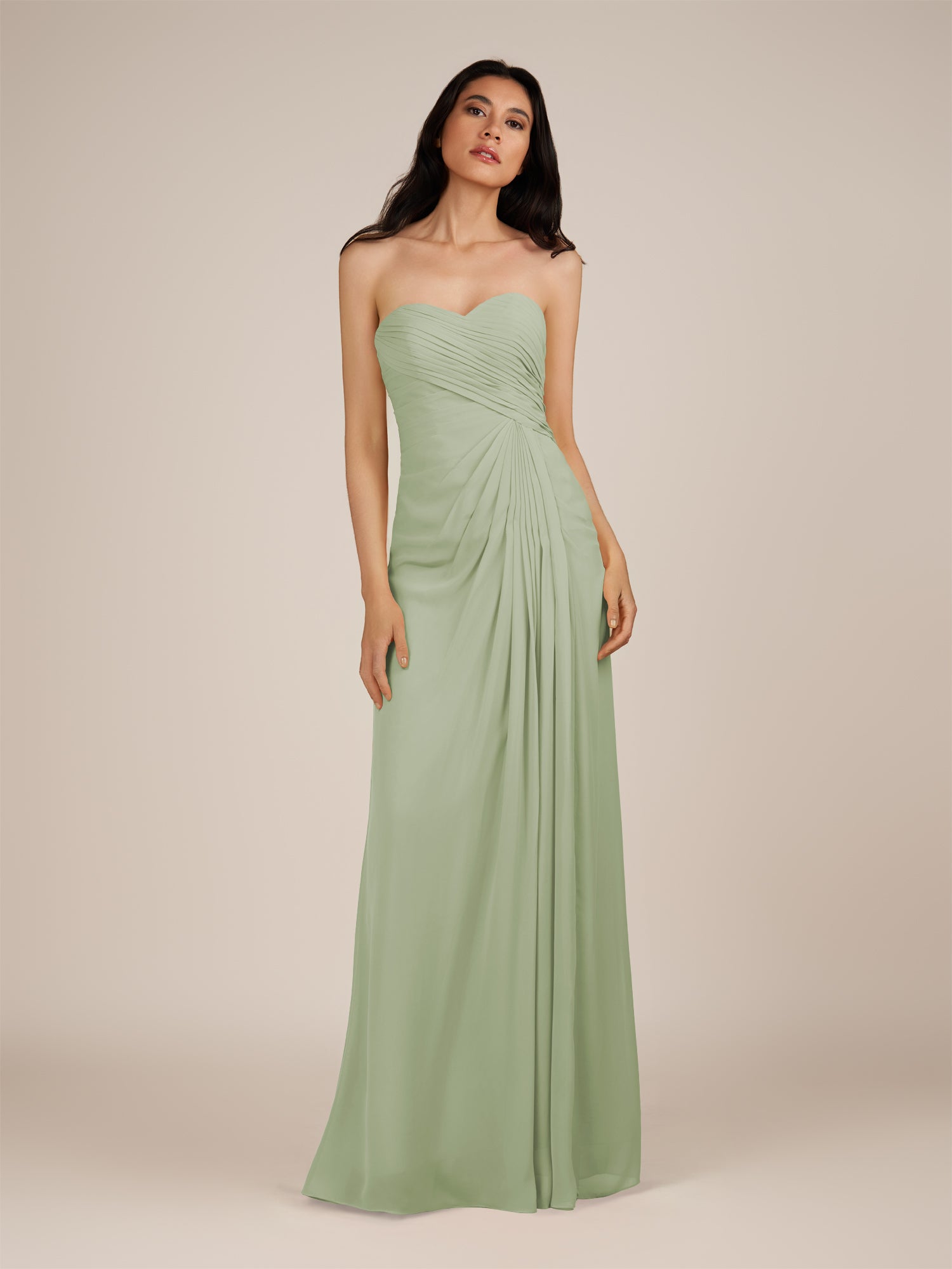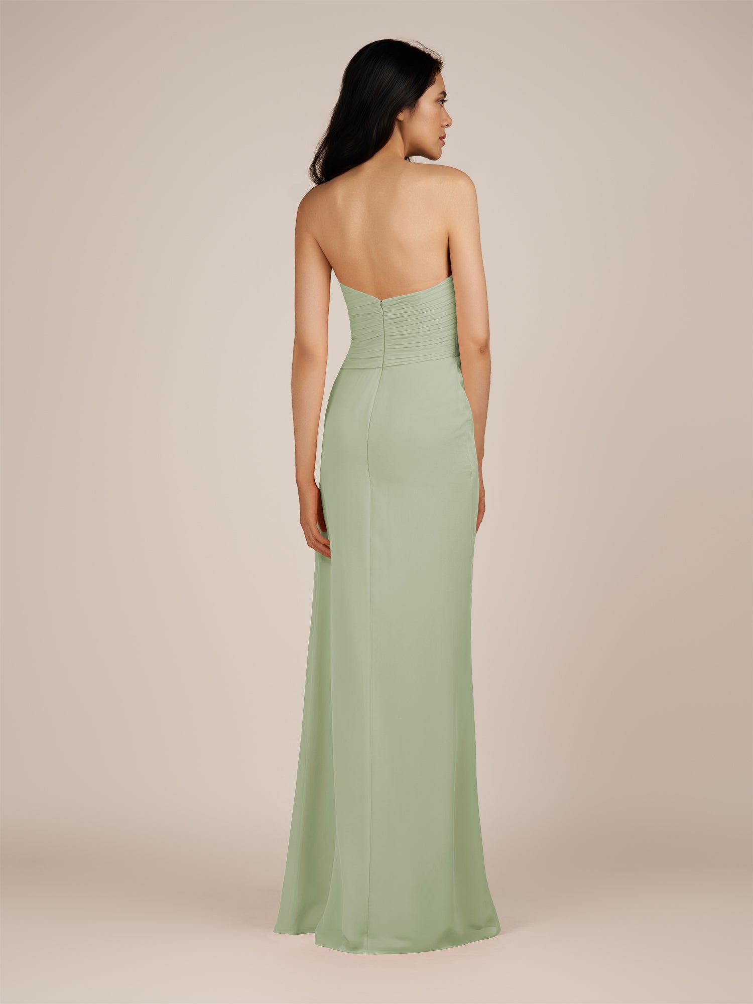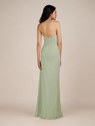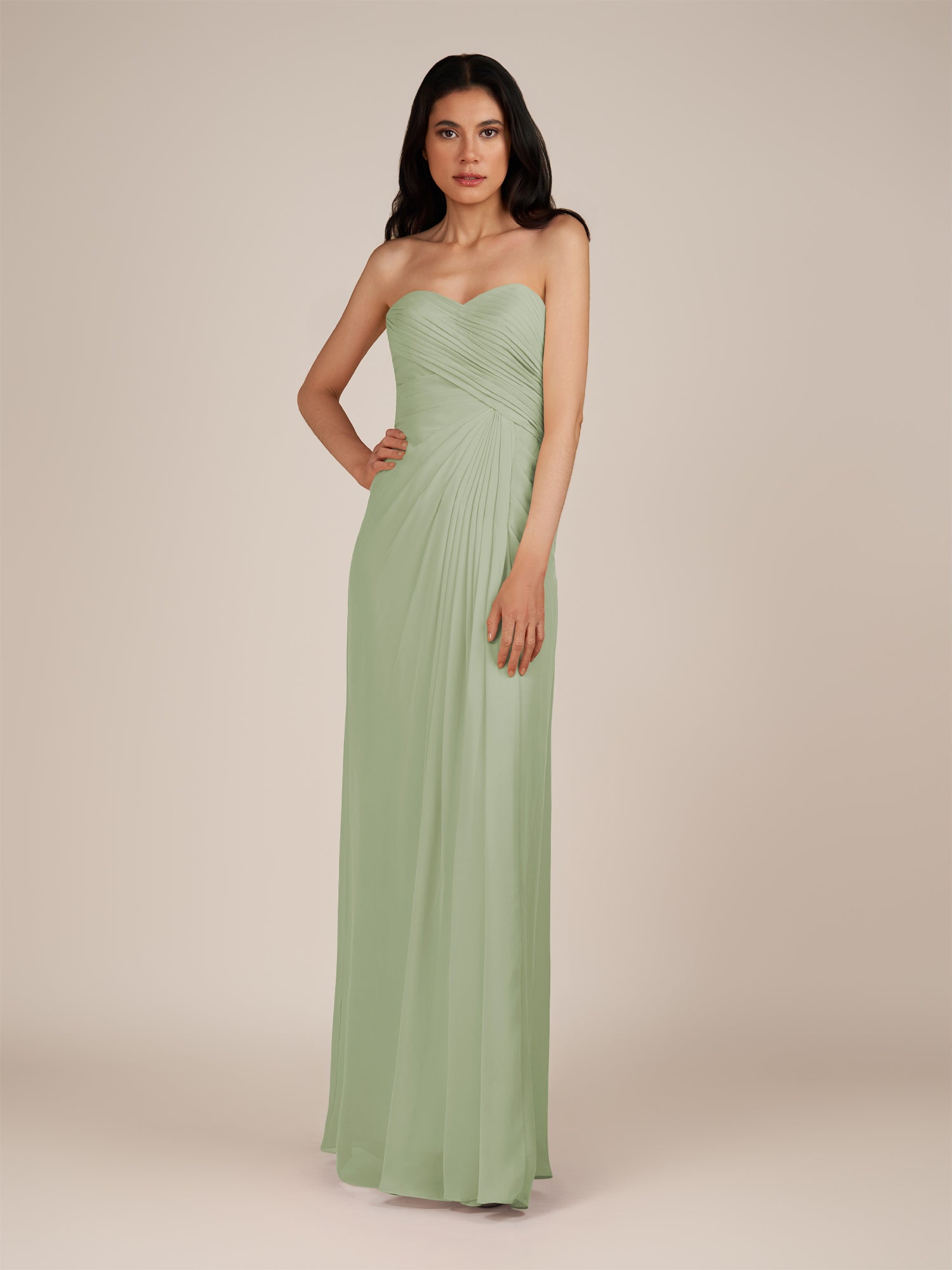 Wanlian | Dusty Sage - A Line Chiffon Sweetheart Long Bridesmaid Dress with Pleats
