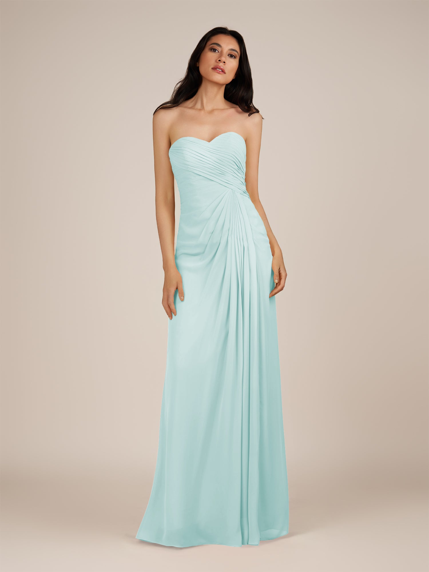 Wanlian | Mist - A Line Chiffon Sweetheart Long Bridesmaid Dress with Pleats