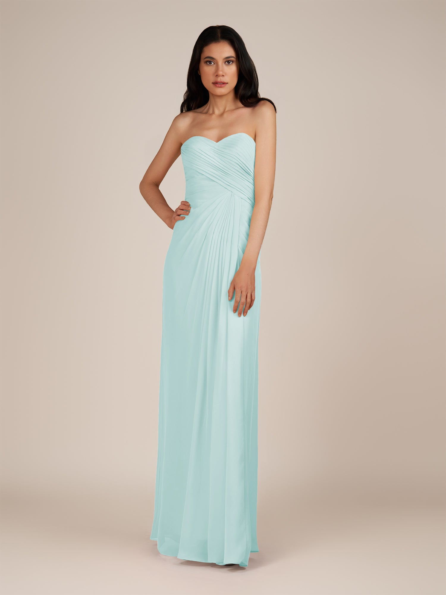 Wanlian is a vibrant and elegant choice for your bridal party. Crafted from soft chiffon, she features a flattering sweetheart neckline and a sleeveless bodice for a timeless, feminine silhouette. Her floor-length A-line skirt flows gracefully with every step, enhanced by delicate pleats that add texture and sophistication. Finished with a smooth zipper back, Wanlian combines classic elegance with modern charm, perfect for weddings and special occasions