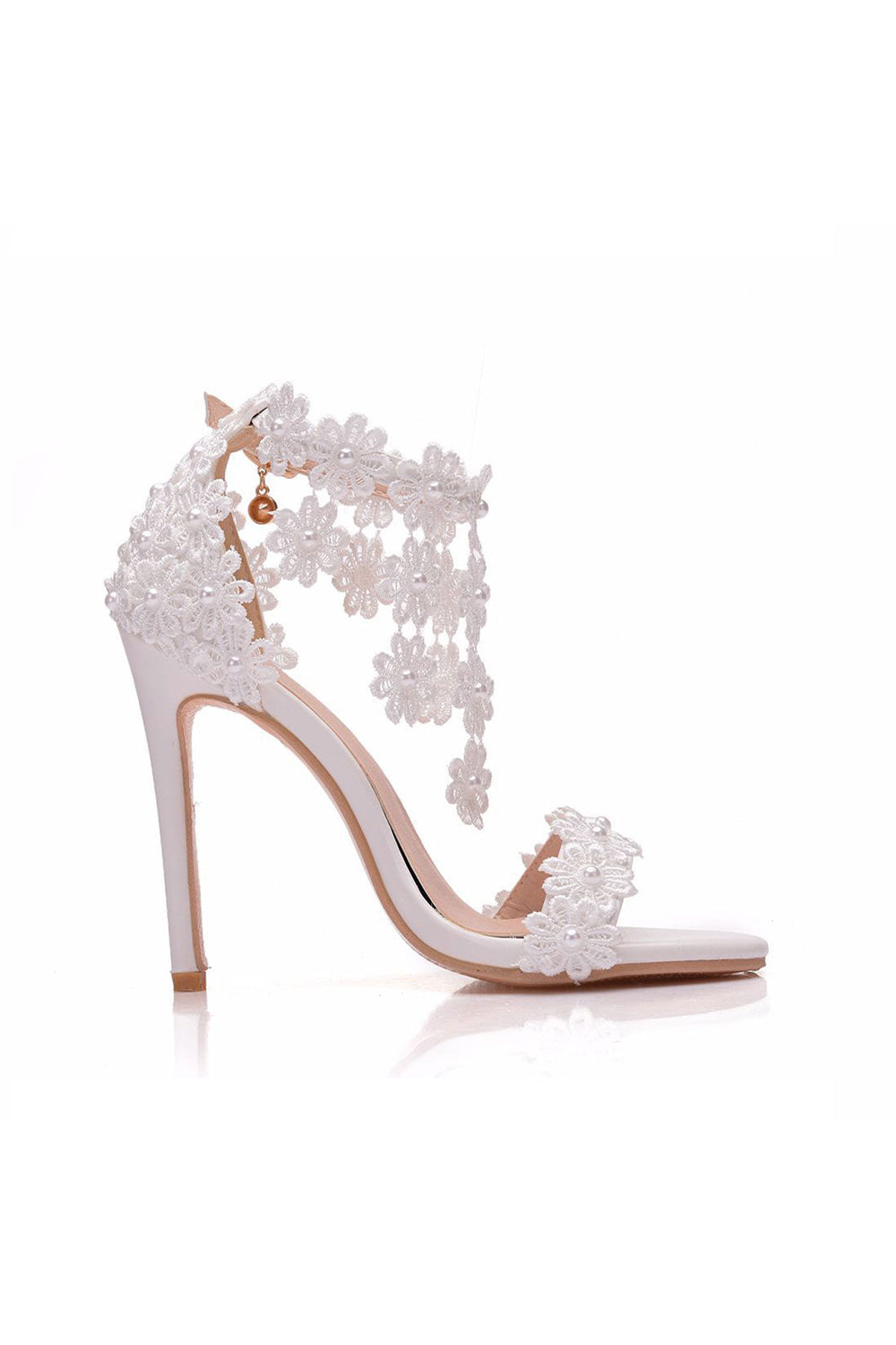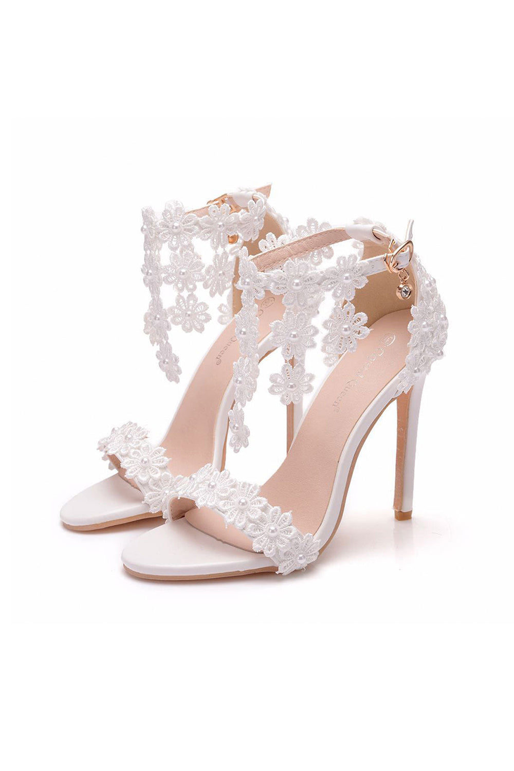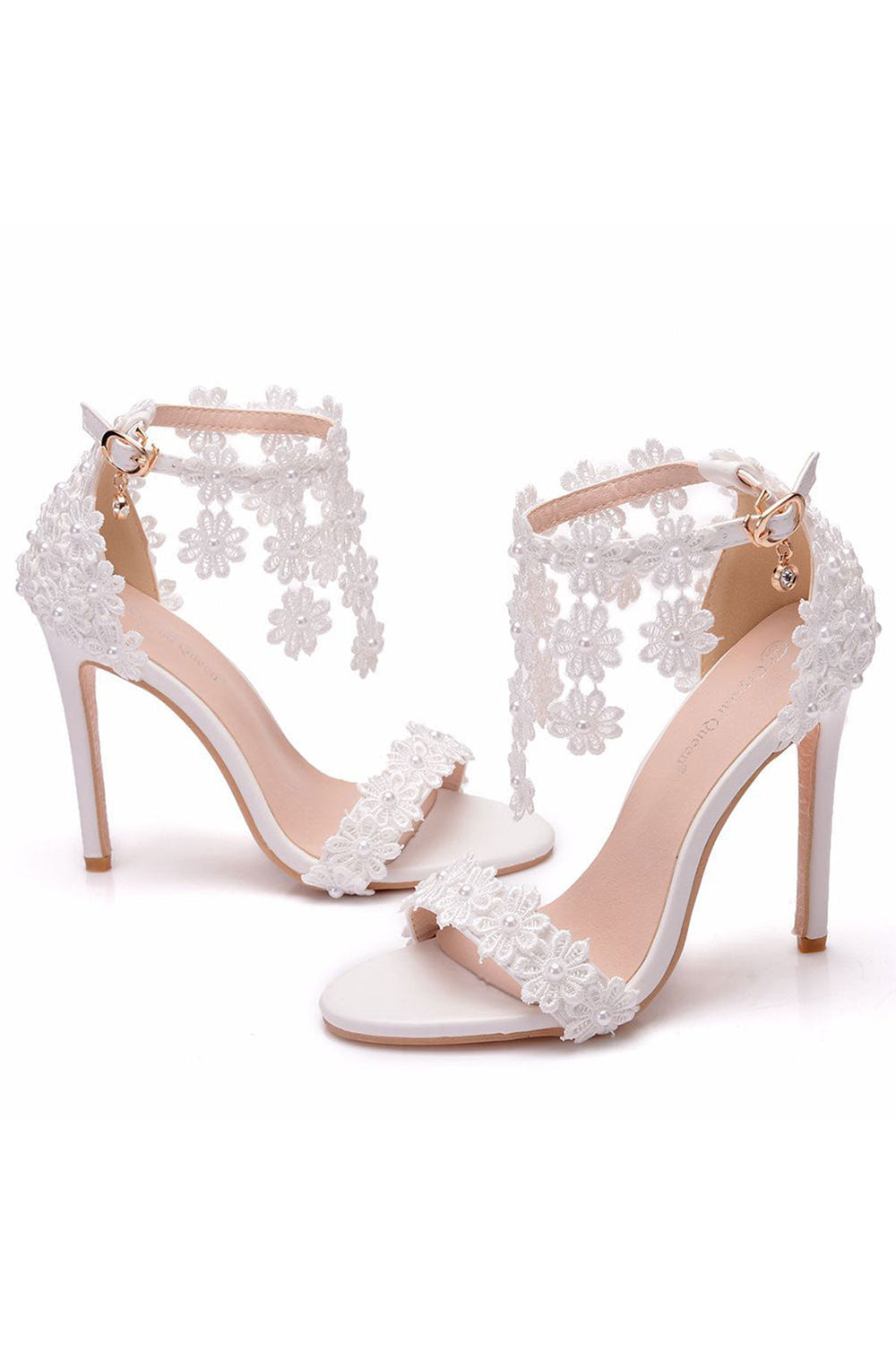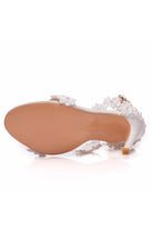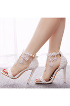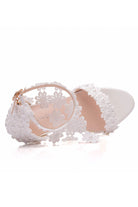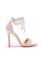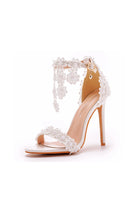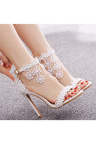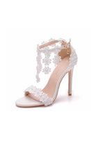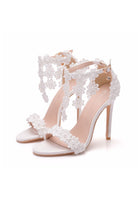 White Lace Flowers Tassels Open Toe Ankle-strap Ultra High Heels