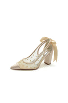 White Mesh Pump with Elegant Bow Detail and Transparent Overlay